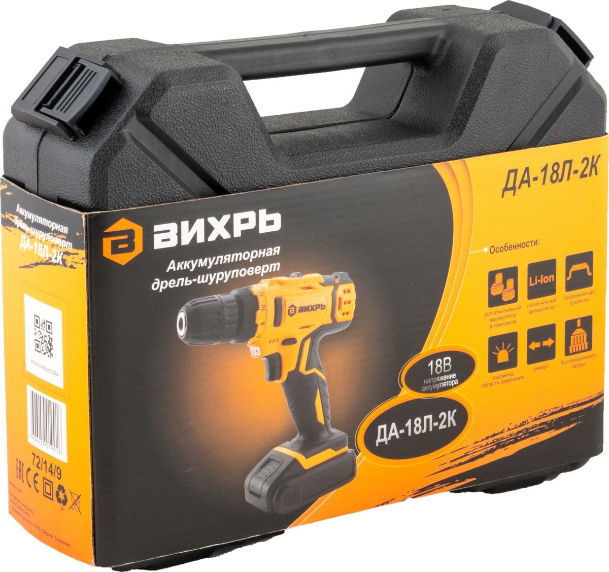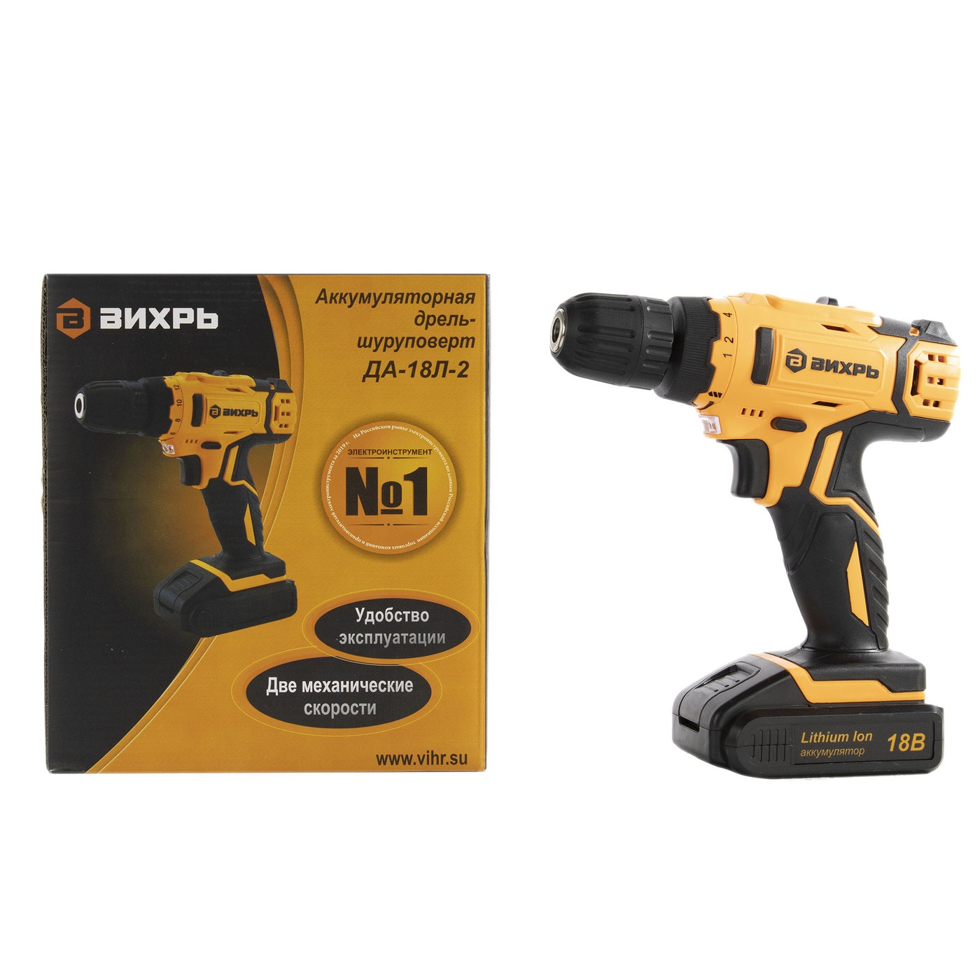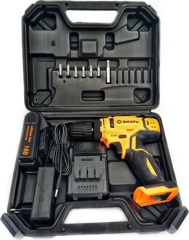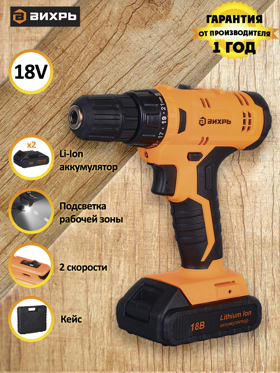 Дрель-шуруповерт Вихрь ДА-18Л-2К, Сменный аккумулятор, 18 В, 45 Нм, 2 АКБ