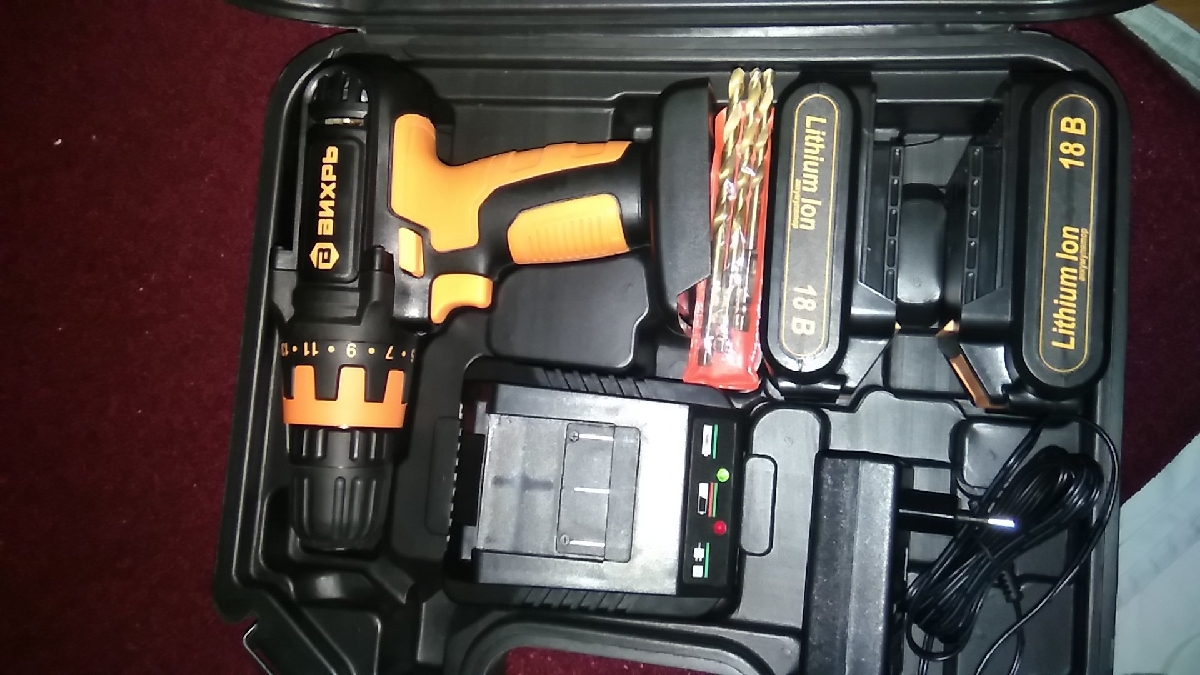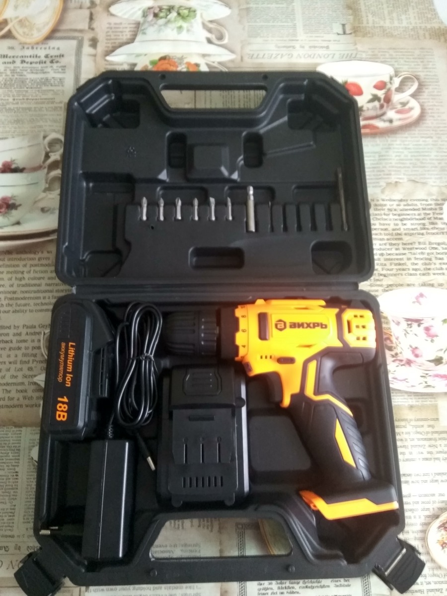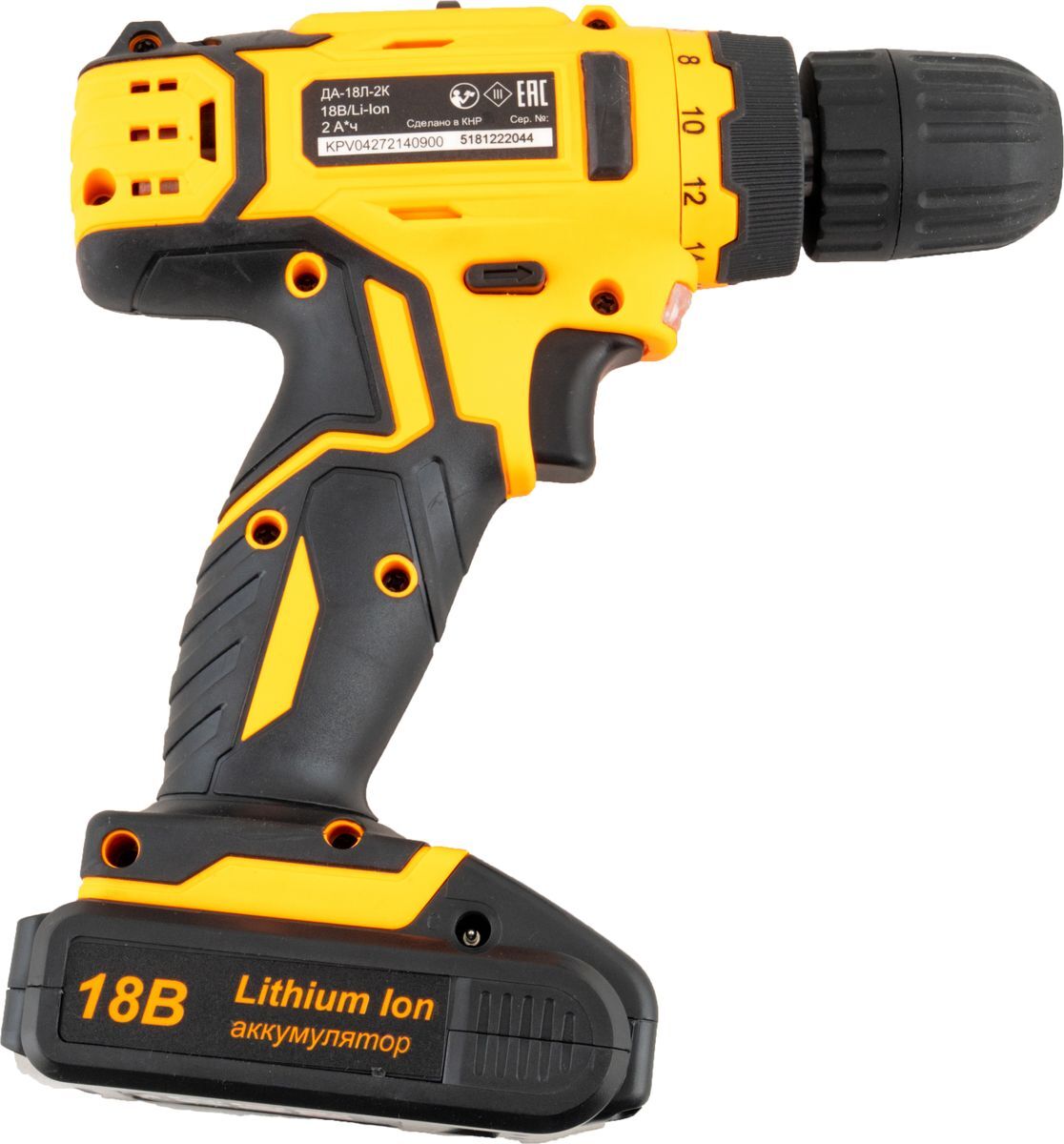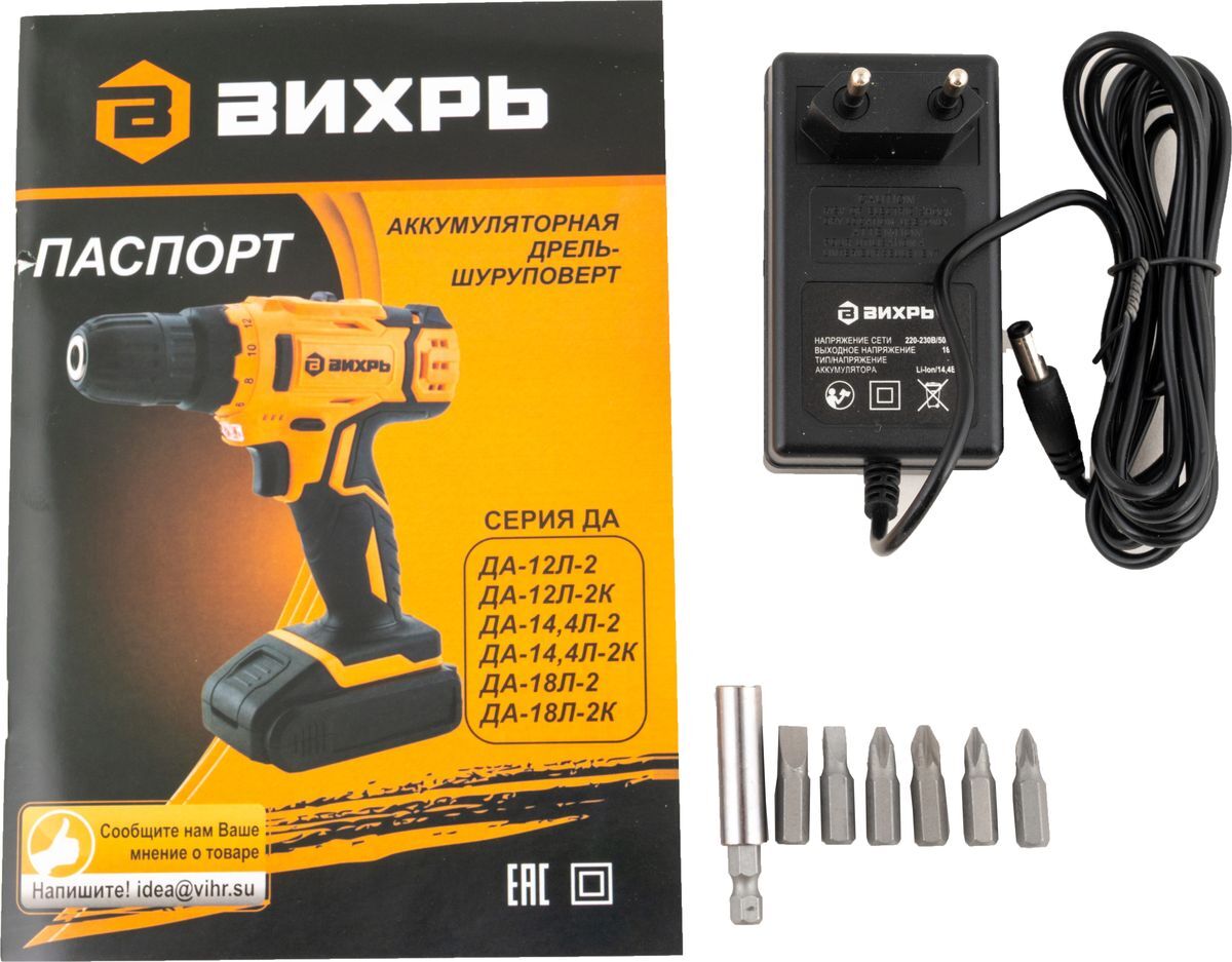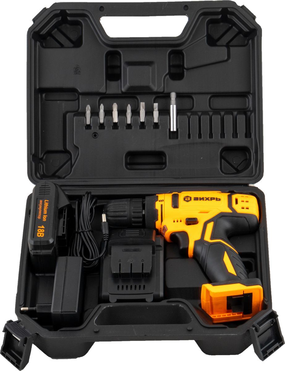 Дрель-шуруповерт Вихрь ДА-18Л-2К, Сменный аккумулятор, 18 В, 45 Нм, 2 АКБ