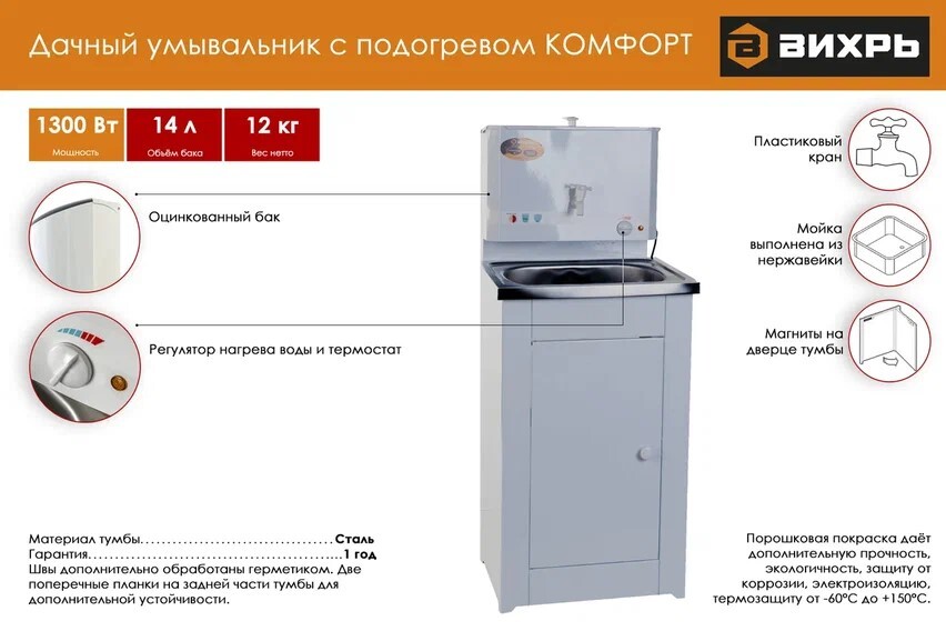 Умывальник дачный "Комфорт" ВИХРЬ с подогревом, нержавейка, белый