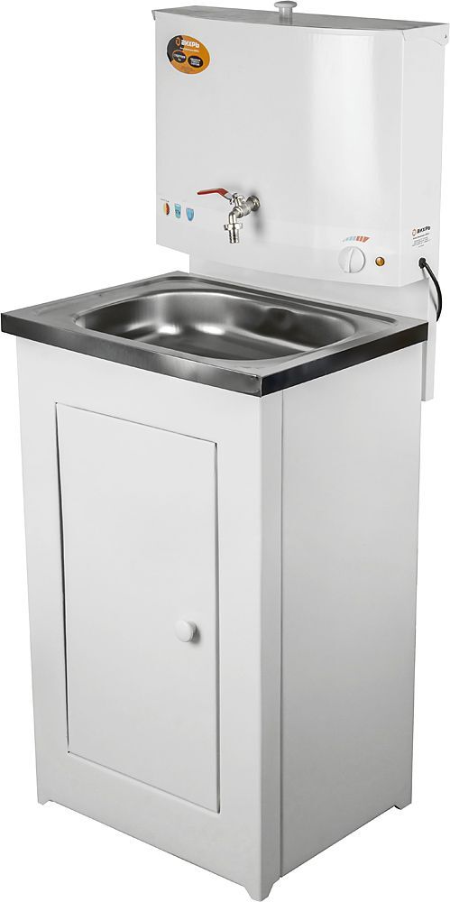 Умывальник дачный ЛЮКС, с подогревом, нержавеющая мойка, цвет белый