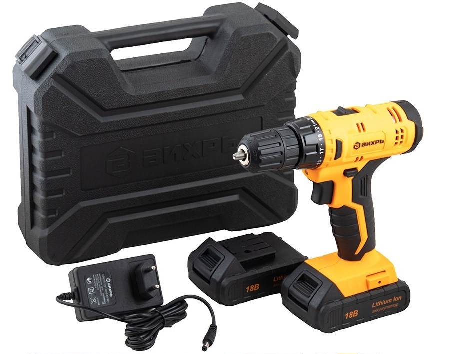 Дрель-шуруповерт Вихрь ДА-18Л-2К, От аккумулятора, 18 В, 45 Нм, 2 АКБ