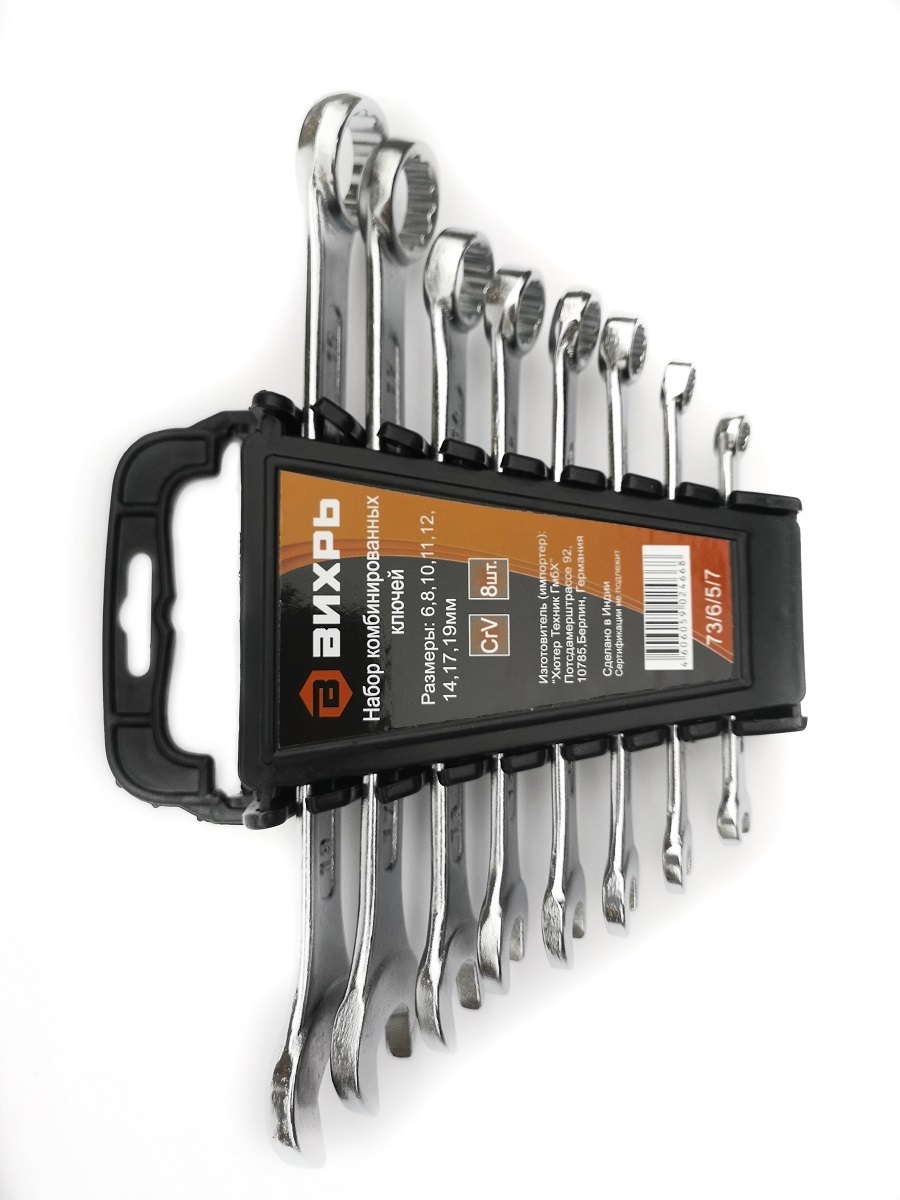 Набор комбинированных ключей Вихрь, 73/6/5/7, 6 - 19 мм, 8 шт
