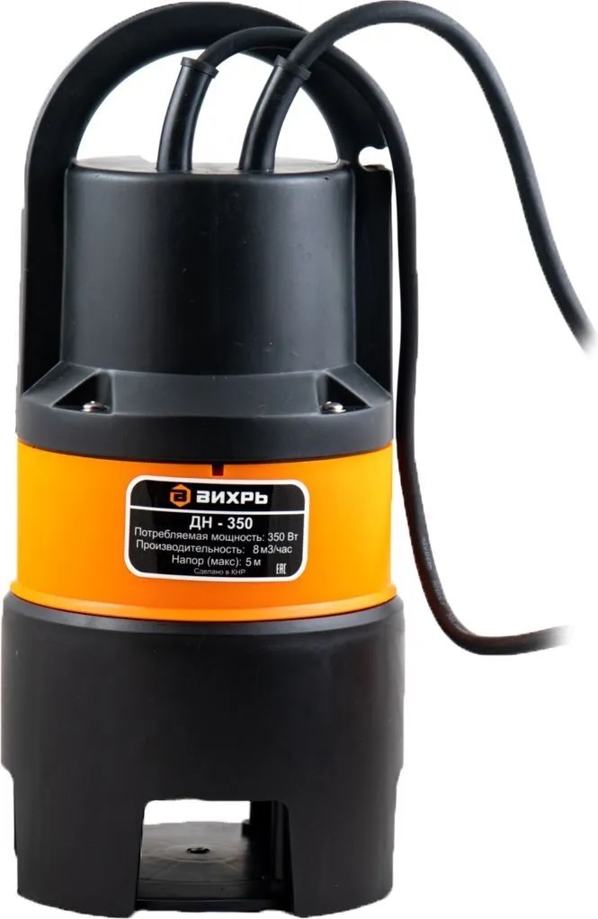Дренажный насос ВИХРЬ ДН-350 для грязной воды (частицы до 35 мм) с поплавковым выключателем