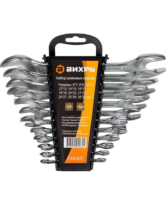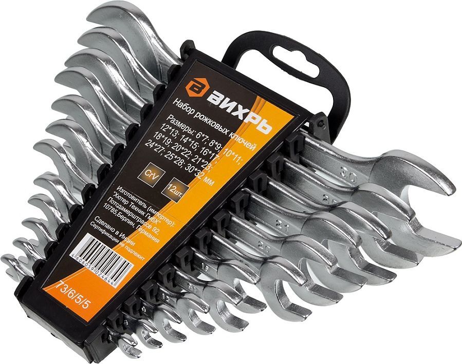 Набор профессиональных гаечных рожковых ключей 12 шт. 6 - 32 Вихрь