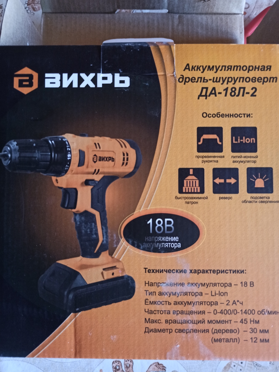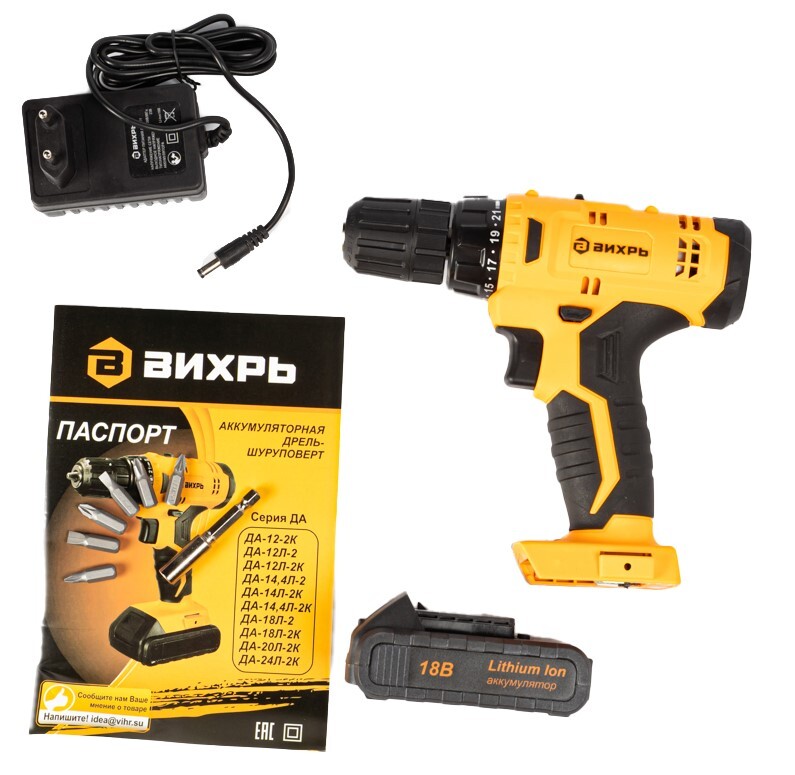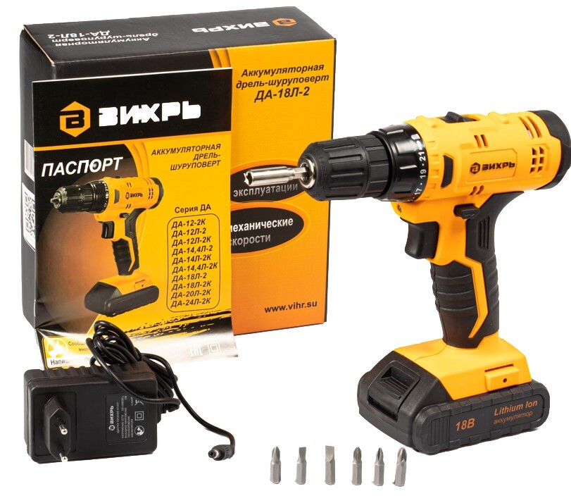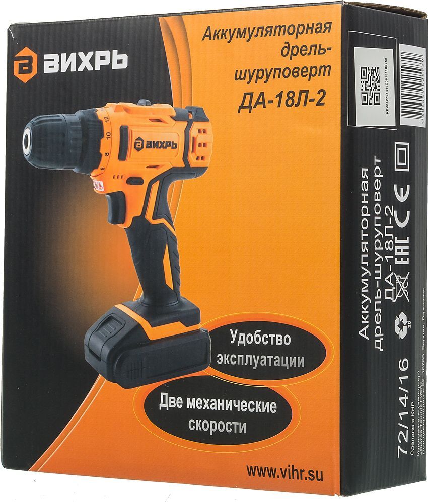 Дрель-шуруповерт аккумуляторная ДА-18Л-2 (2,0 А/ч) Вихрь