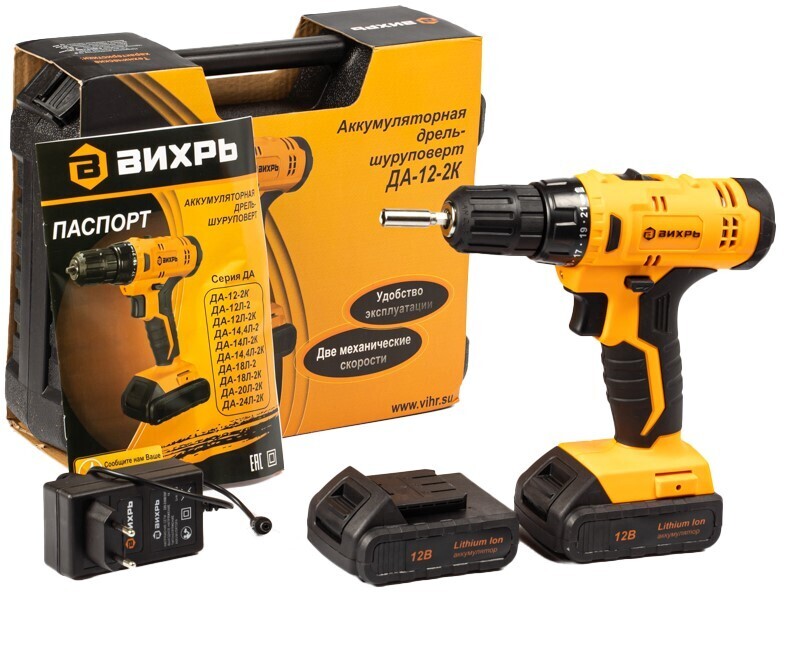 Дрель-шуруповерт Вихрь ДА-12-2К, От аккумулятора, 12 В, 30 Нм, 2 АКБ