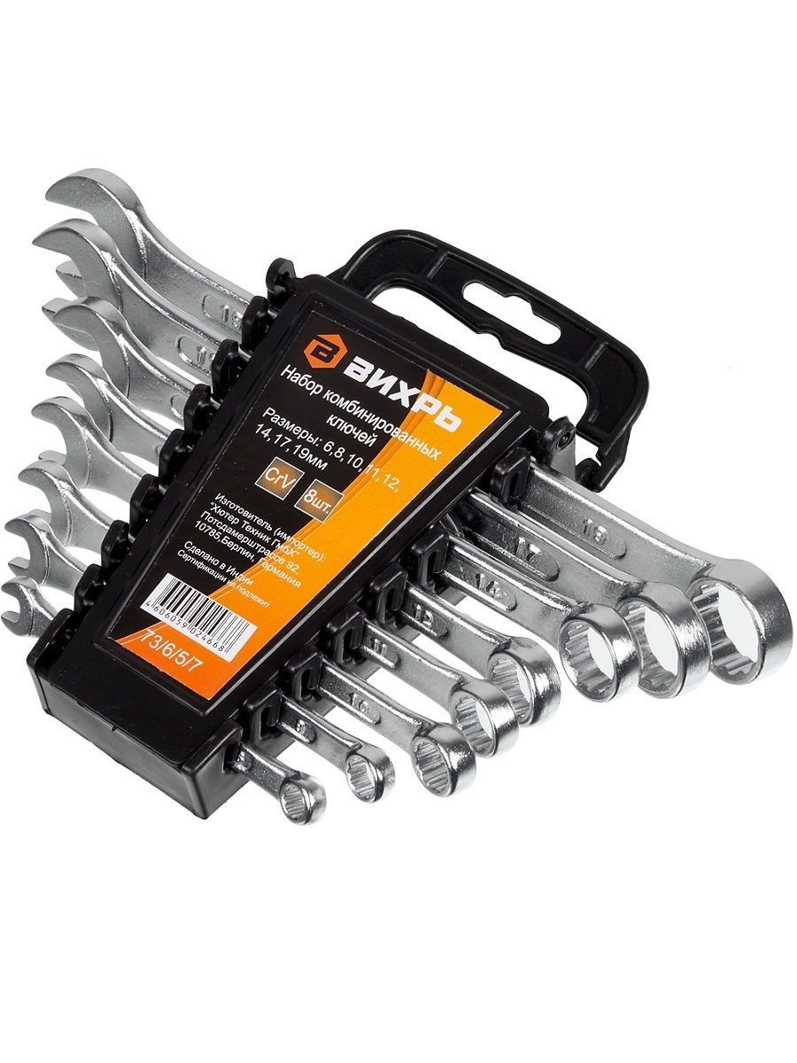 Набор комбинированных ключей Вихрь, 73/6/5/7, 6 - 19 мм, 8 шт