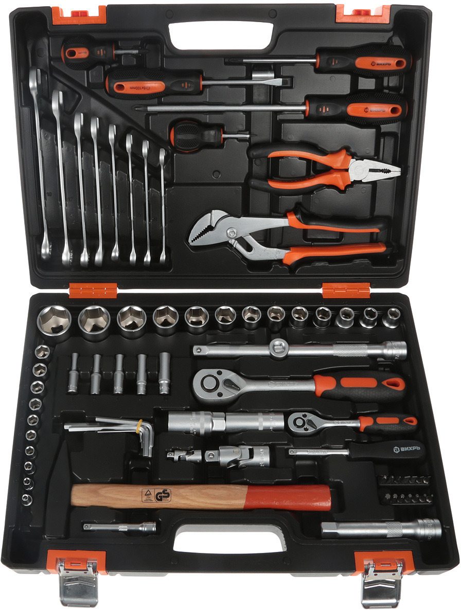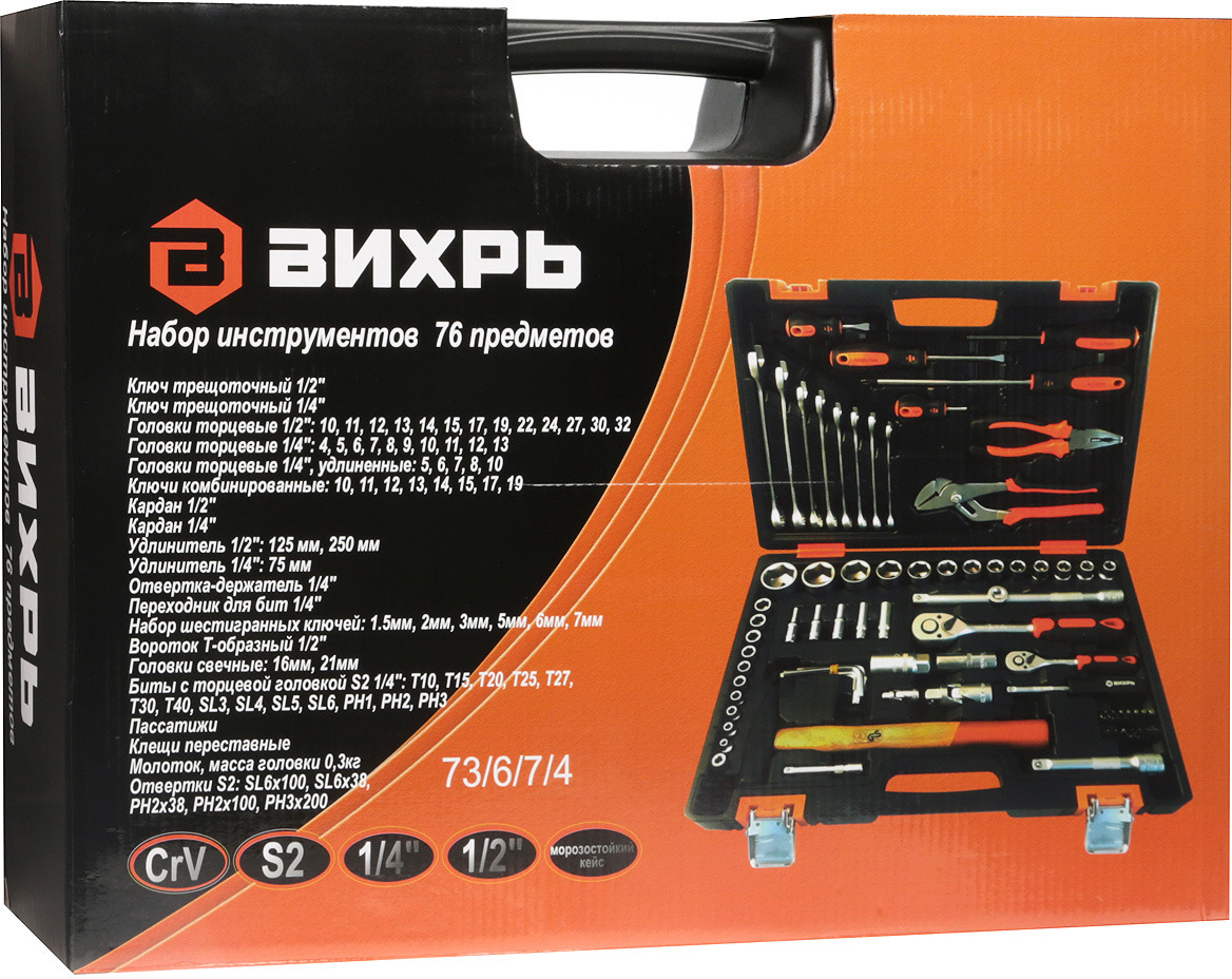 Набор инструментов Вихрь, в кейсе, 1/2", 1/4", CrV, 76 предметов