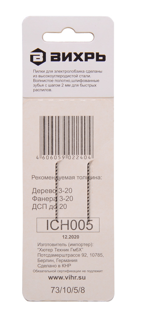 Пилки для лобзика электрического Т119В по дереву,быстрый рез 76х50мм (2 шт) Вихрь