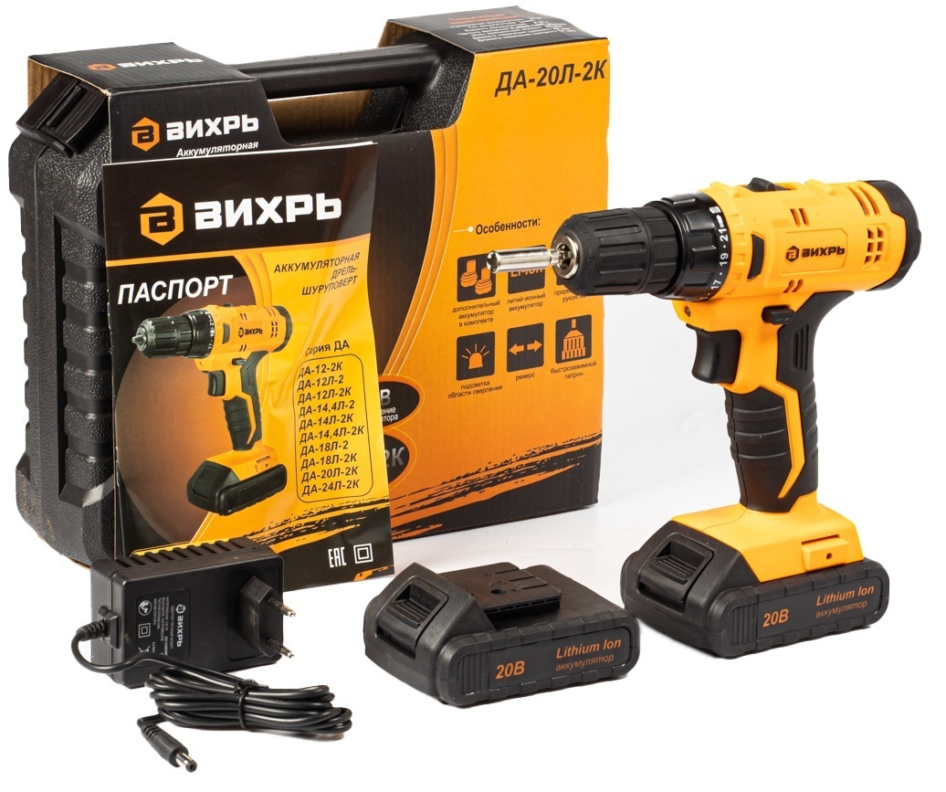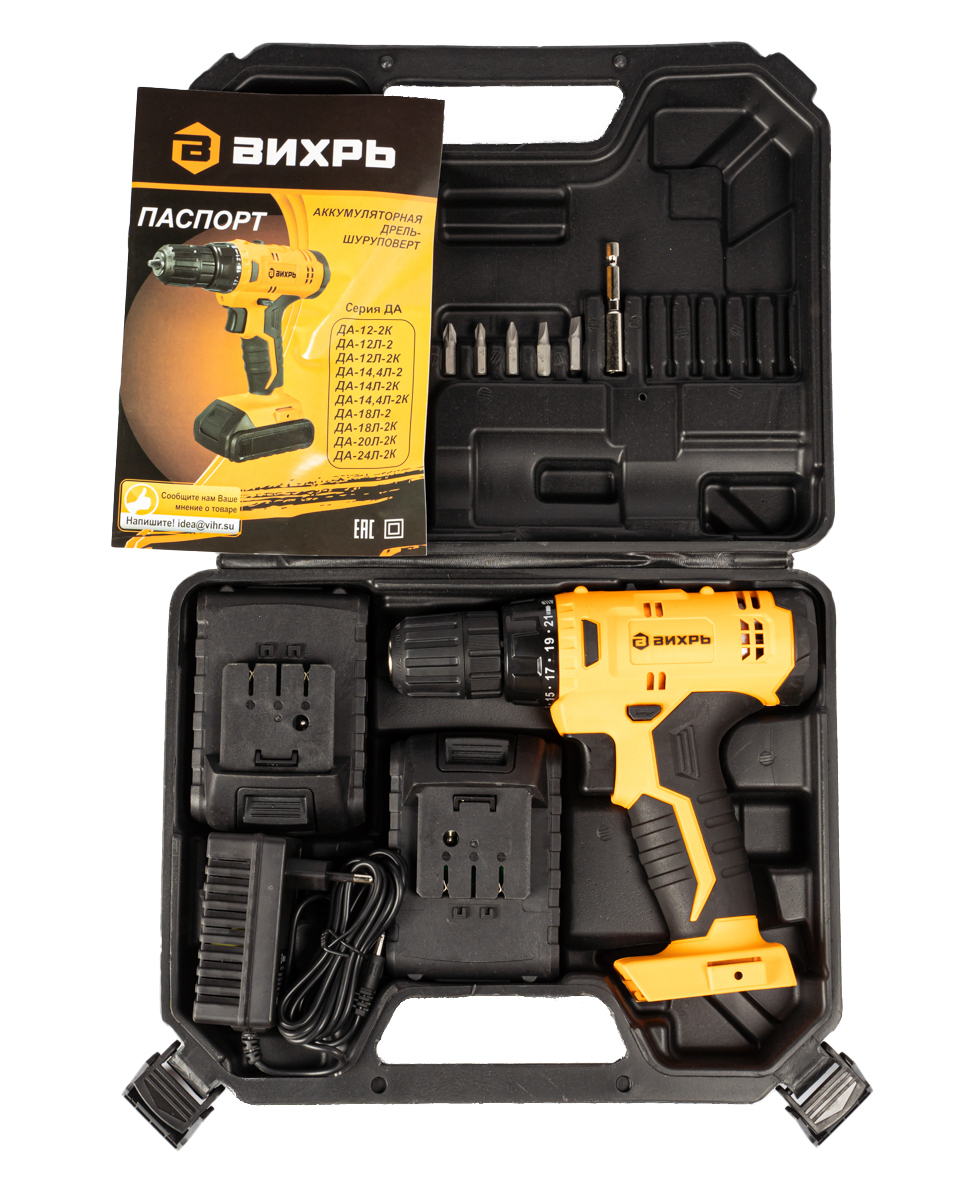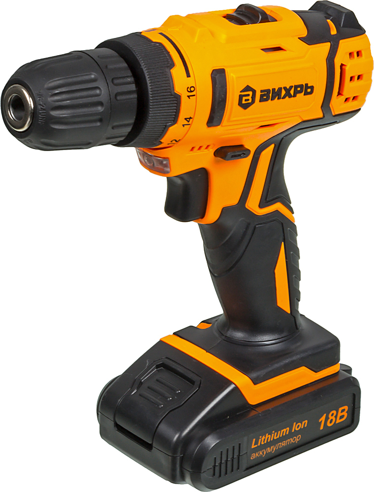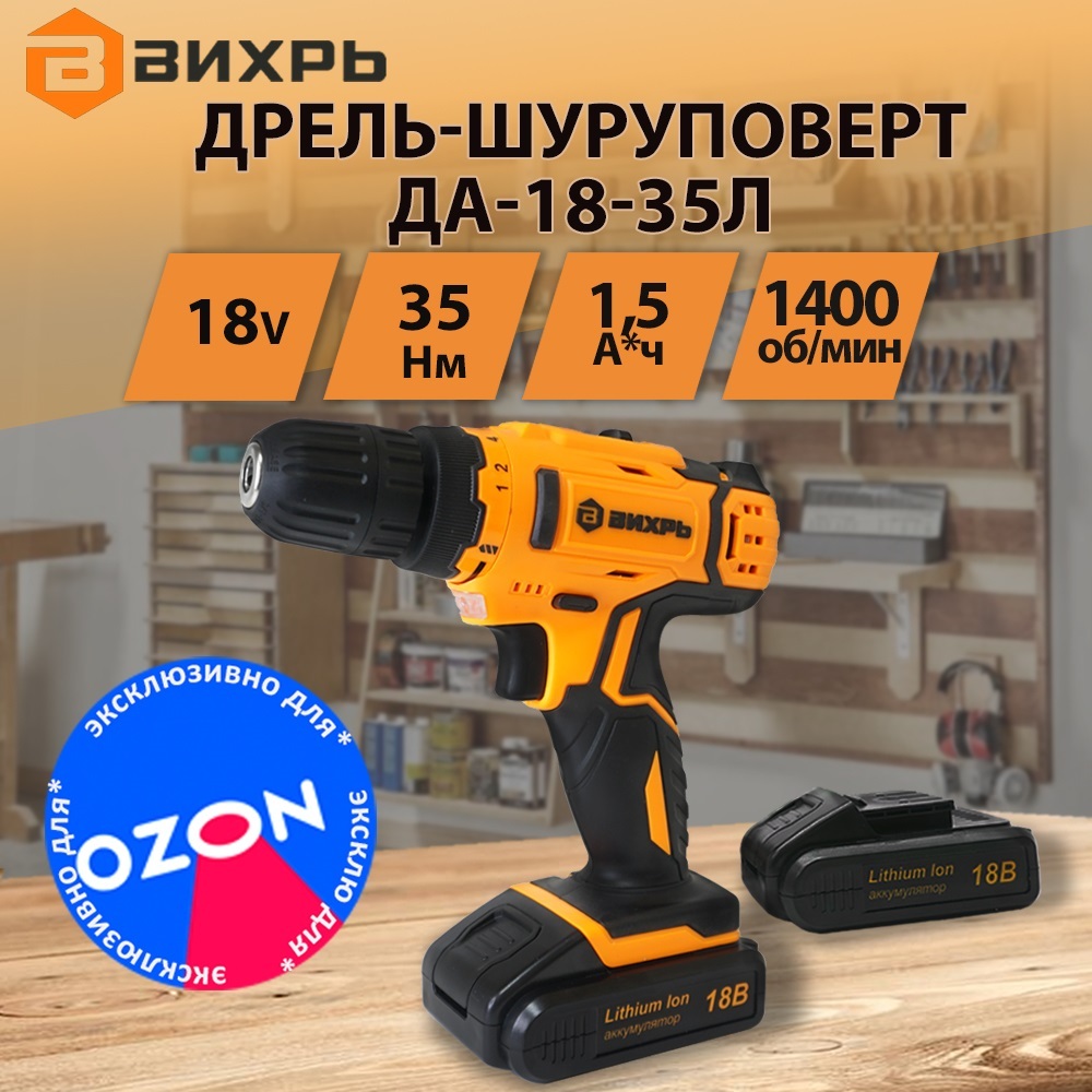 Дрель-шуруповерт аккумуляторная Вихрь ДА-18-35Л 900/72/14/28 в кейсе, 18В 35Hm, 2хLi-ion