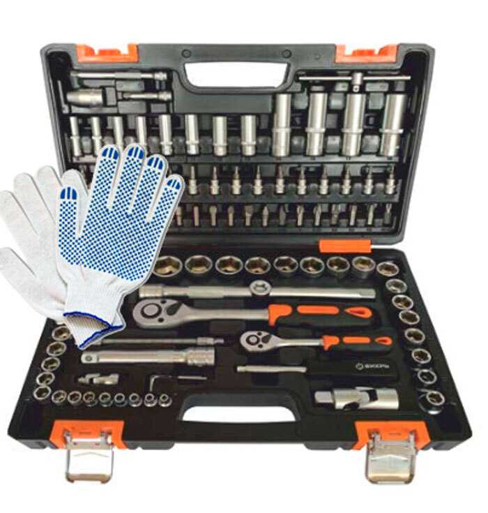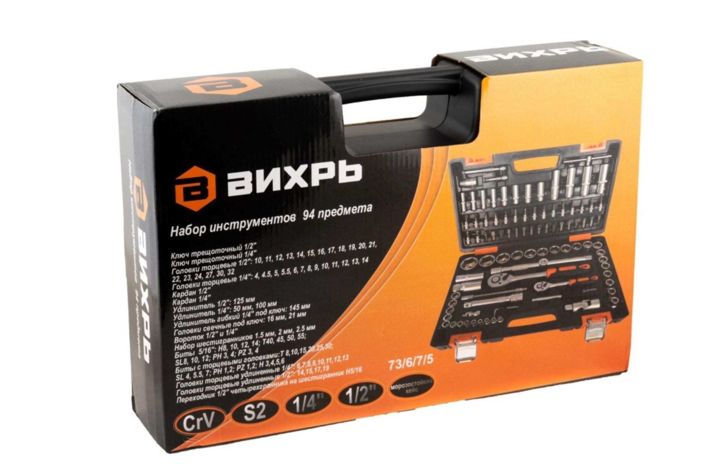 Набор инструментов, 1/2", 1/4", CrV, пластиковый кейс 94 предметов Вихрь +подарок перчатки