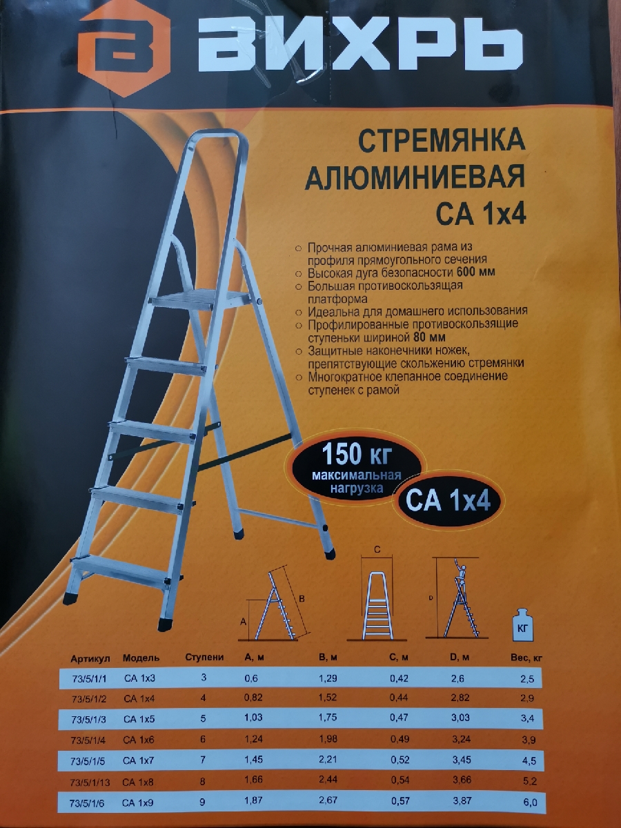 Стремянка Вихрь СА, 73/5/1/2, 4 ступеней