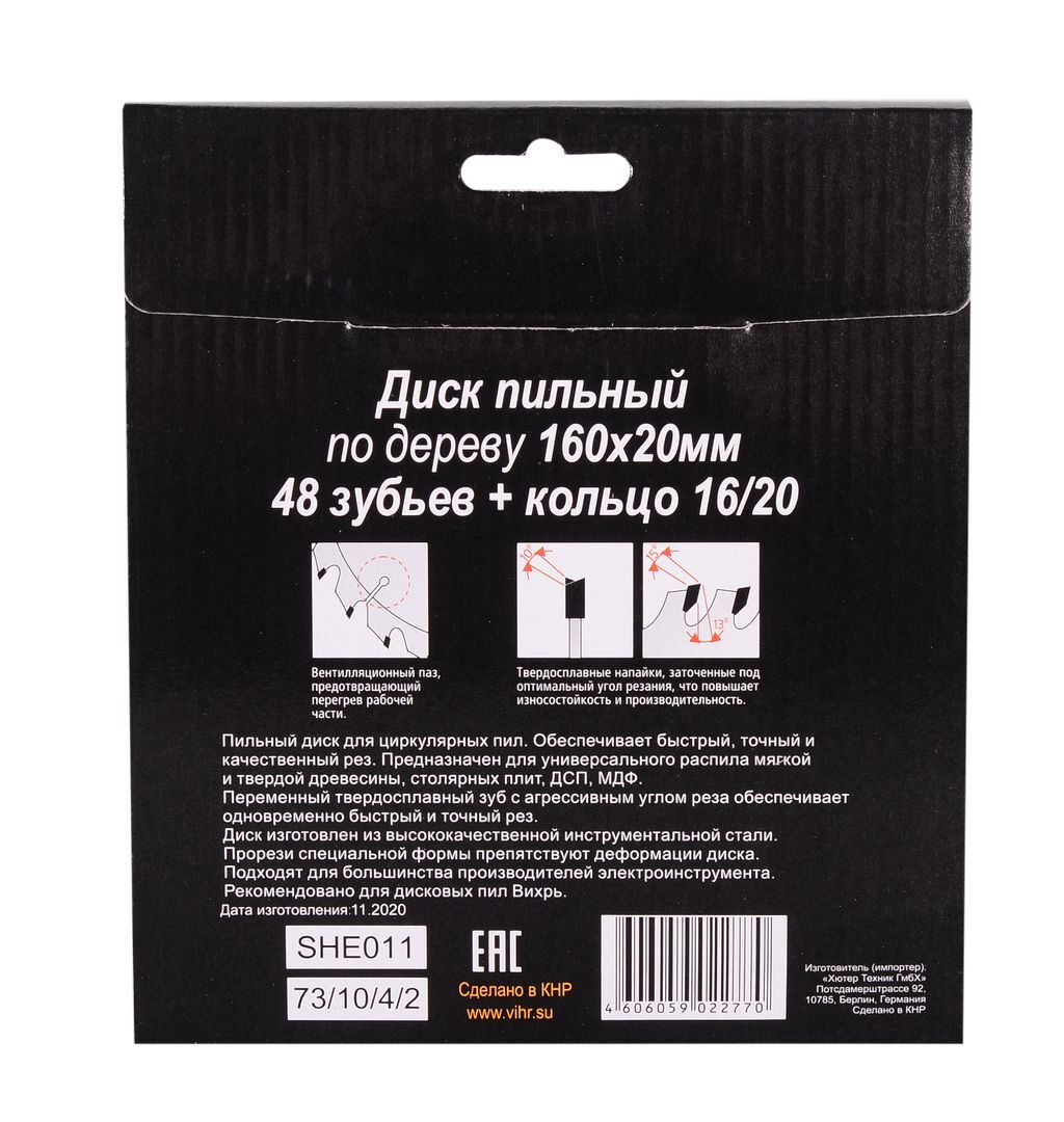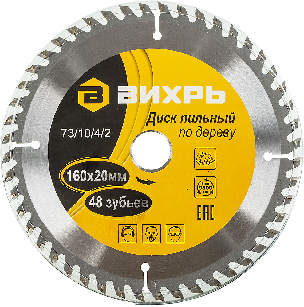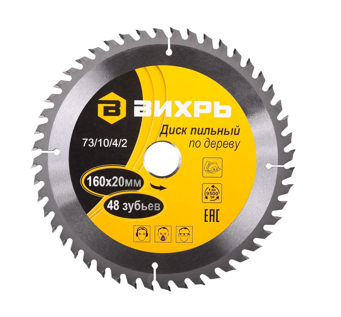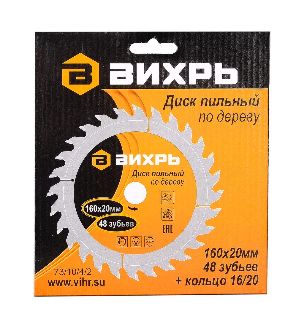 Диск пильный по дереву 160х20 мм,48 зубьев+кольцо 16/20 Вихрь для дисковых, циркулярных пил