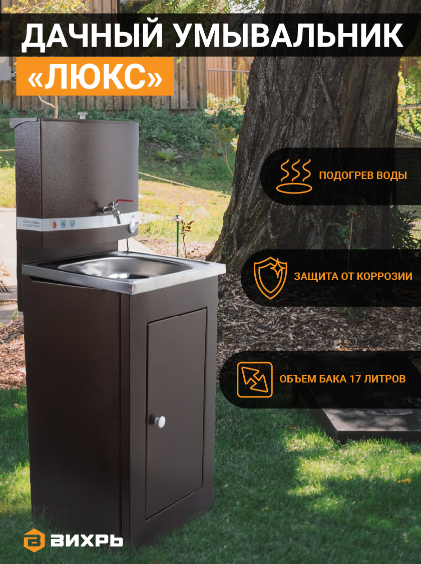Умывальник дачный с подогревом "Люкс" ВИХРЬ, нержавейка, медь