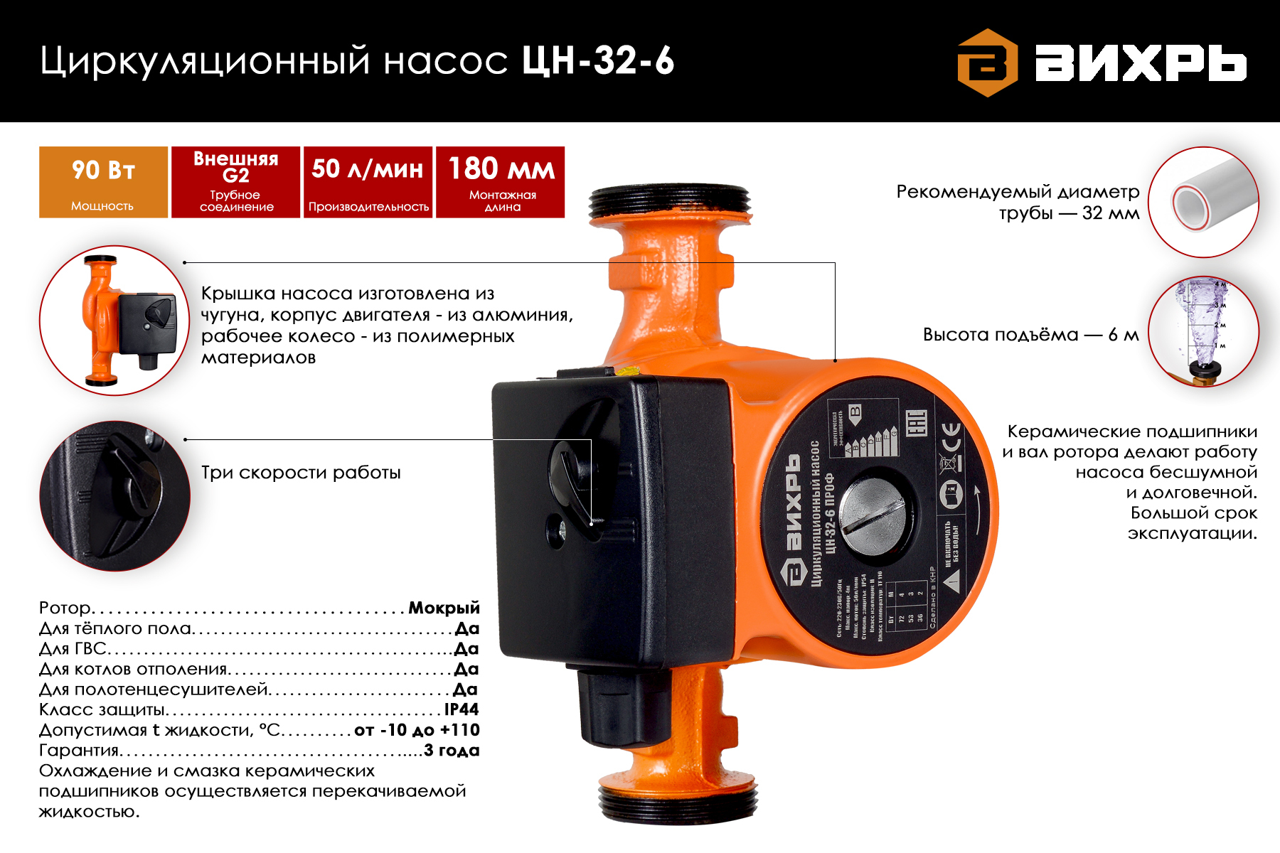 Насос циркуляционный Вихрь "ЦН-25-6"