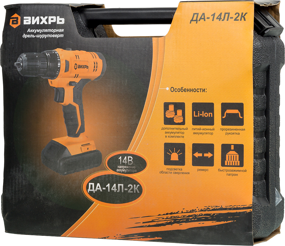 Дрель-шуруповерт Вихрь ДА-14Л-2KА (ДА-14Л-2K), От аккумулятора, 14 В, 30 Нм, 2 АКБ