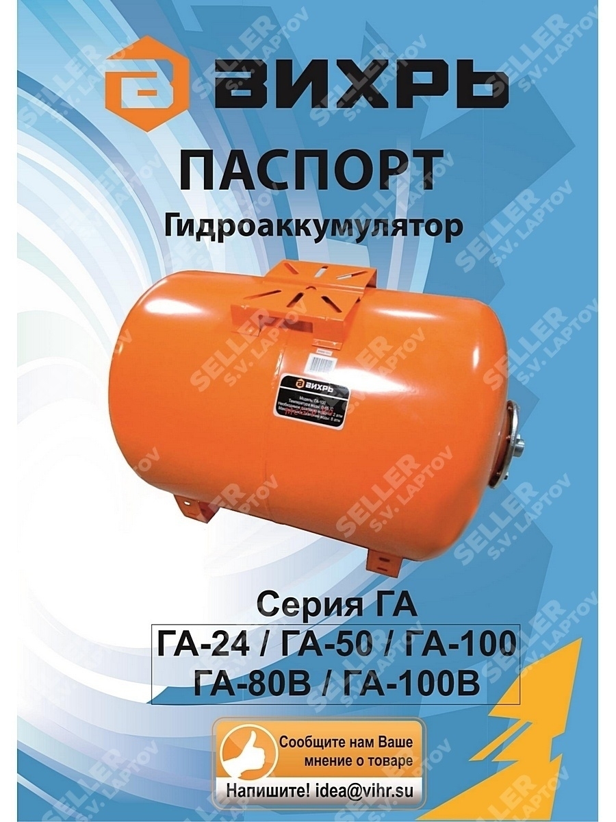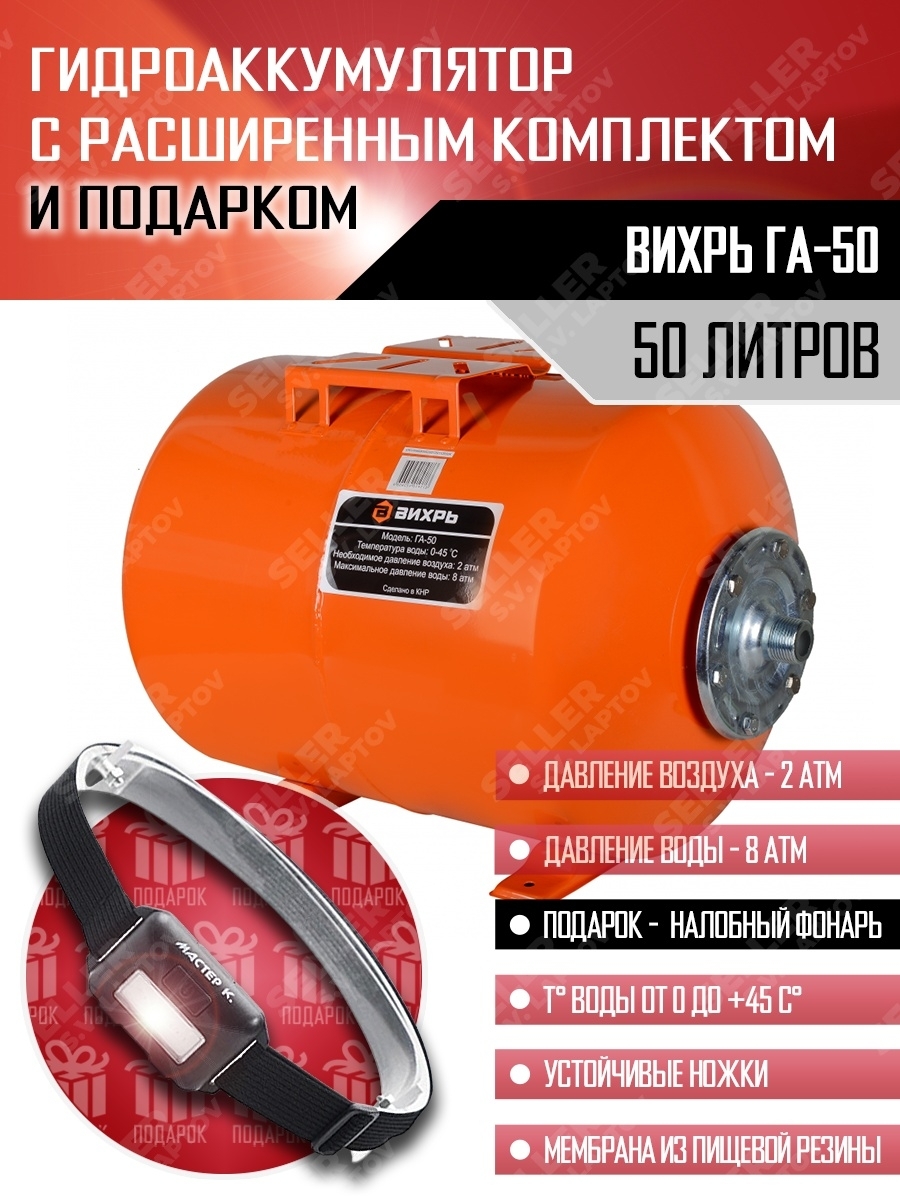 Гидроаккумулятор для системы водоснабжения, расширительный бак ВИХРЬ ГА-50, 50 литров