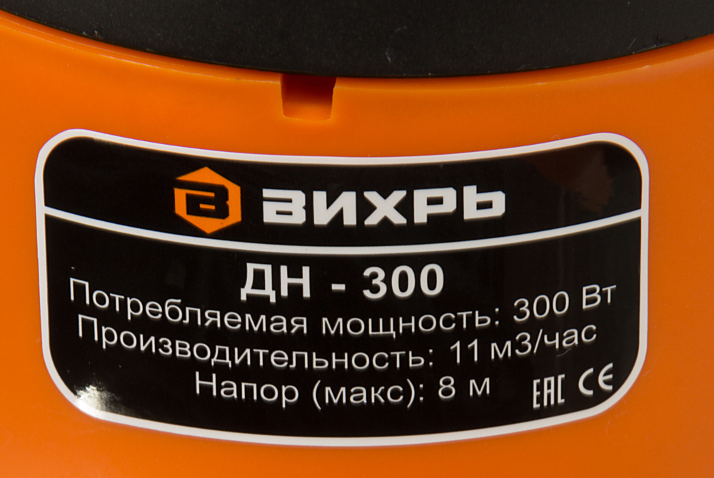 Насос дренажный для чистой воды Вихрь ДН-300 300Вт 11000л/час (68/2/6)