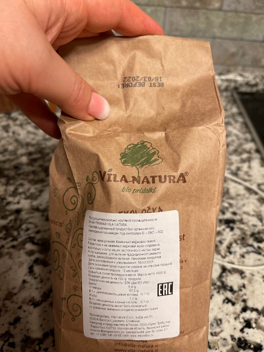 Мука ржаная био каменного жернового помола Vila Natura 3 пачки по 1 килограмму