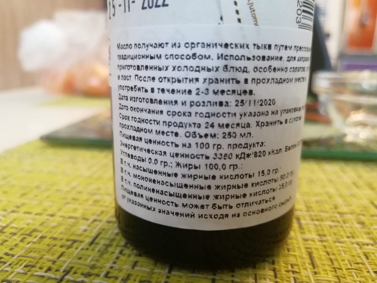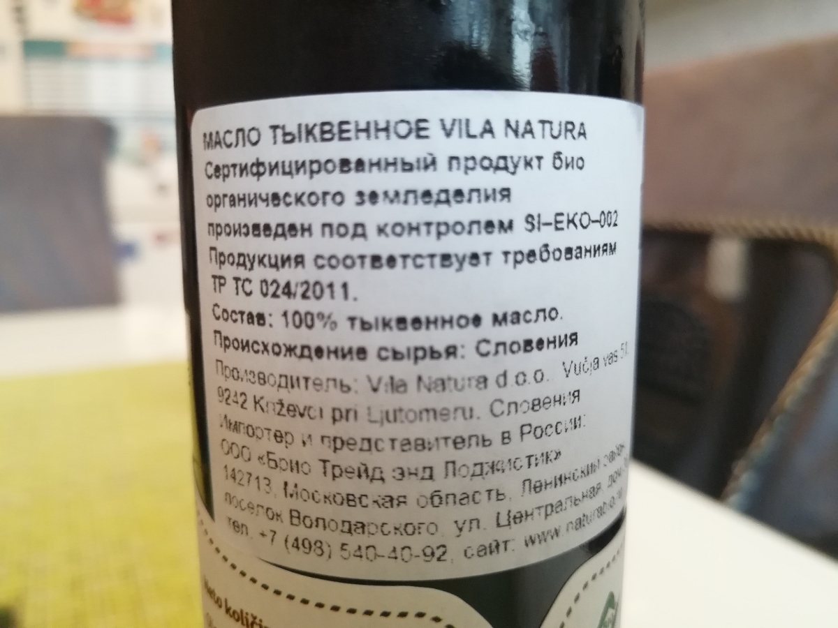 Масло тыквенное Штирийское фермерское IGP био Vila Natura 250 миллилитров