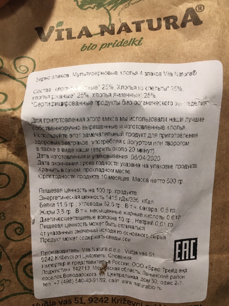 Спельта био Vila Natura organic 2 пакета по 1 кг