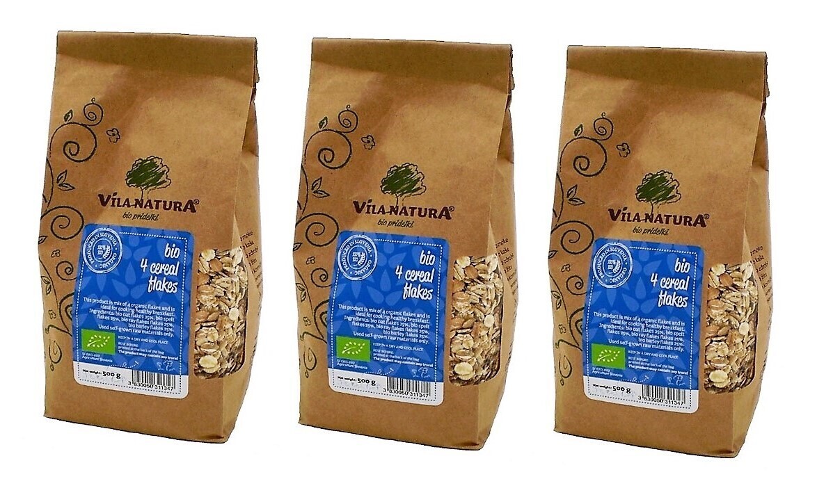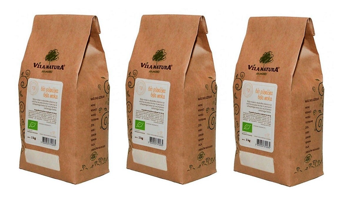 Мука пшеничная жерновая экстра (тип 500) био Vila Natura organic 3 пакета по 1 килограмму