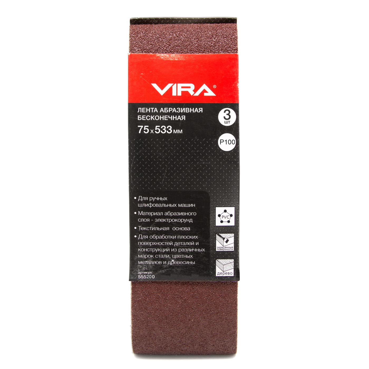 Лента шлифовальная Vira 533 мм 75 мм P100, 3 шт.