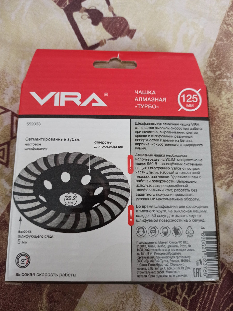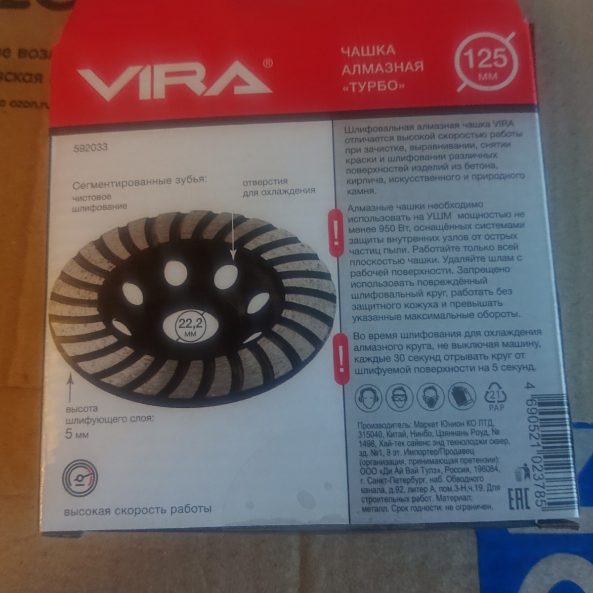 Чашка алмазная зачистная 125 мм ТУРБО VIRA
