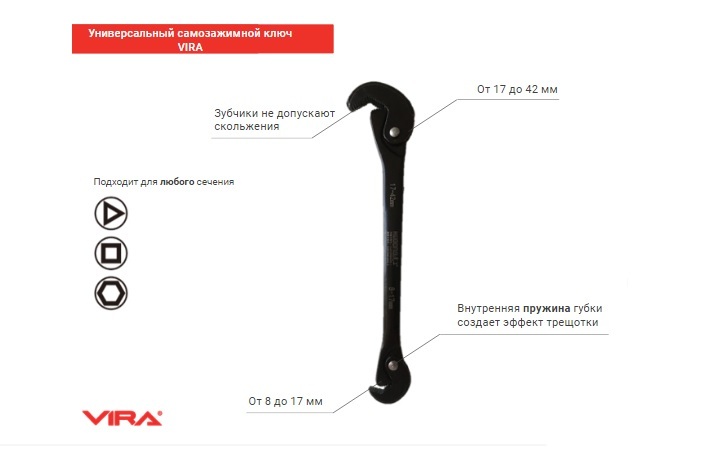 Ключ универсальный самозажимной 8-42 мм VIRA