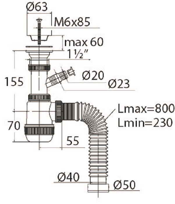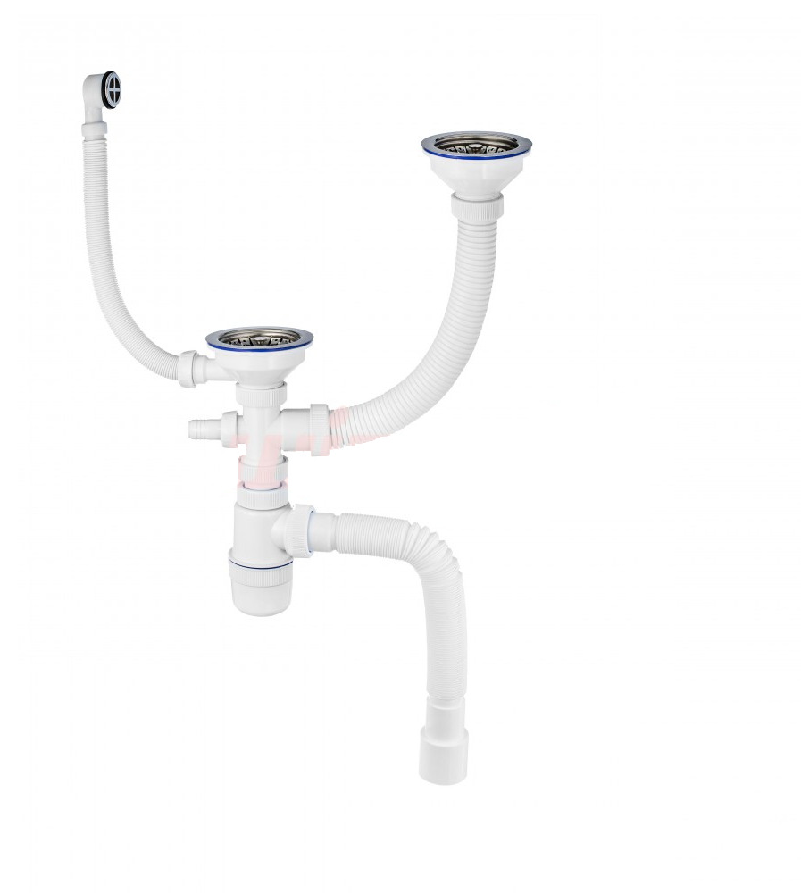 Сифон VIRPLAST ЭЛИТ для 2-ой мойки D-112 с отводом и круглым переливом