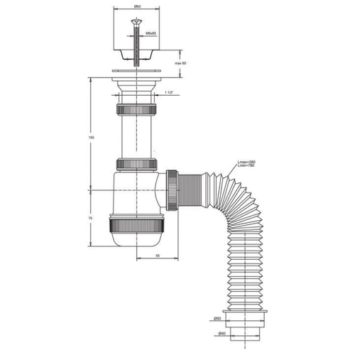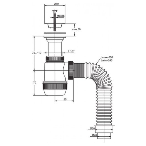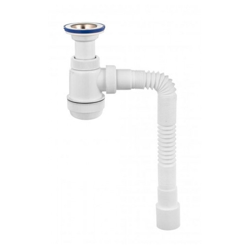 VIRPlast Сифон для умывальника, с нержавеющей чашкой и гибкой трубой, "Мини элит"