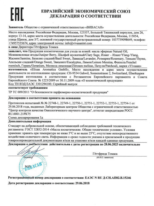 Vivasan масло ГЕРАНЬ Эфирное масло 10 мл