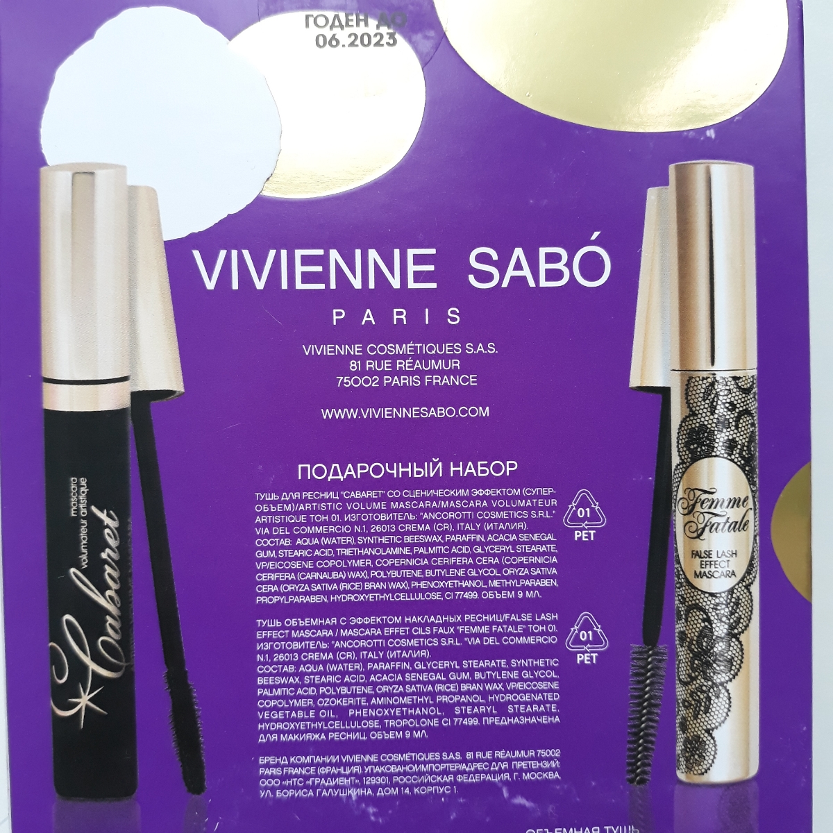Vivienne Sabo Подарочный набор косметики: Тушь Cabaret, №1 + Тушь Femme Fatale, черный