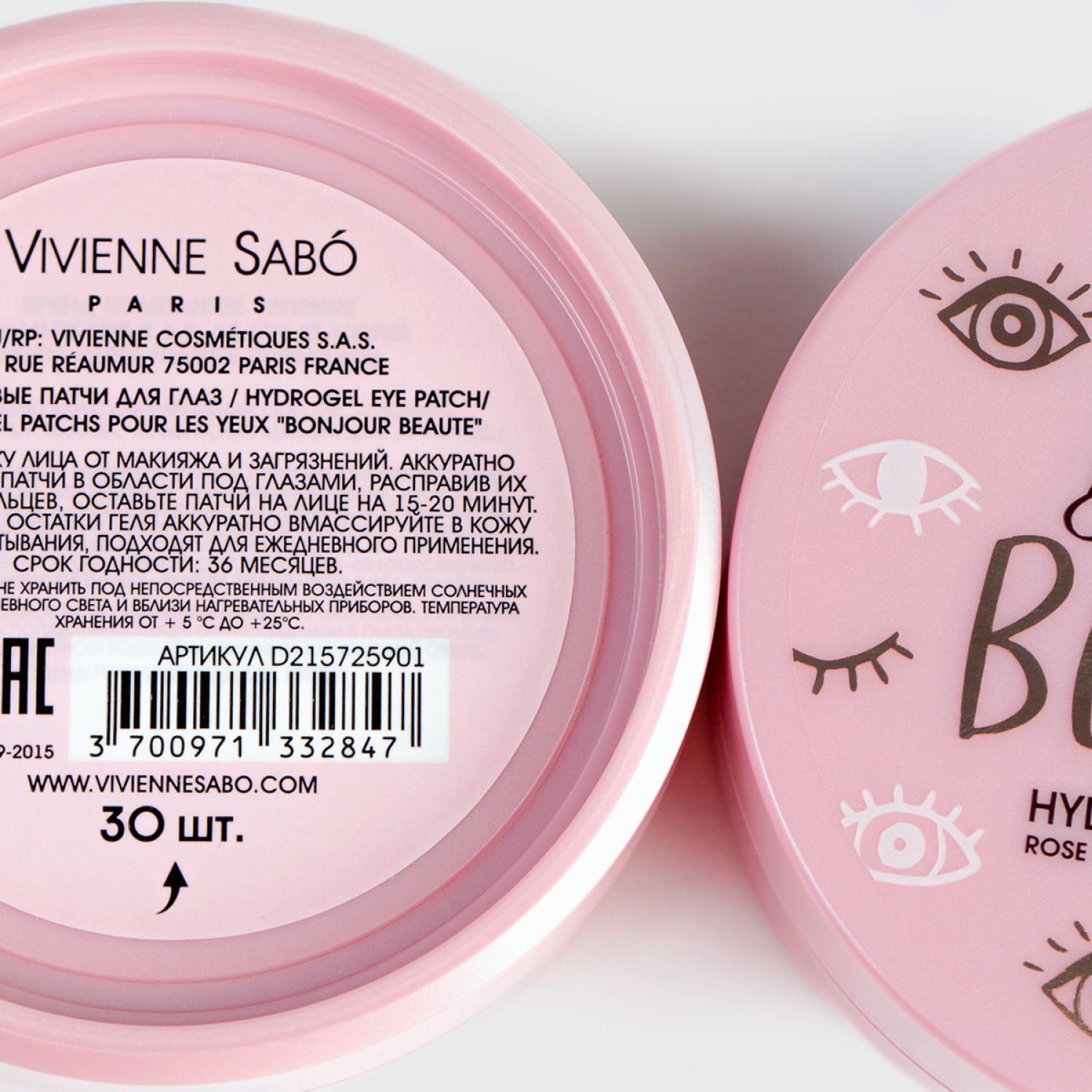 Гидрогелевые патчи для глаз Vivienne Sabo Bonjour beaute, 30 шт
