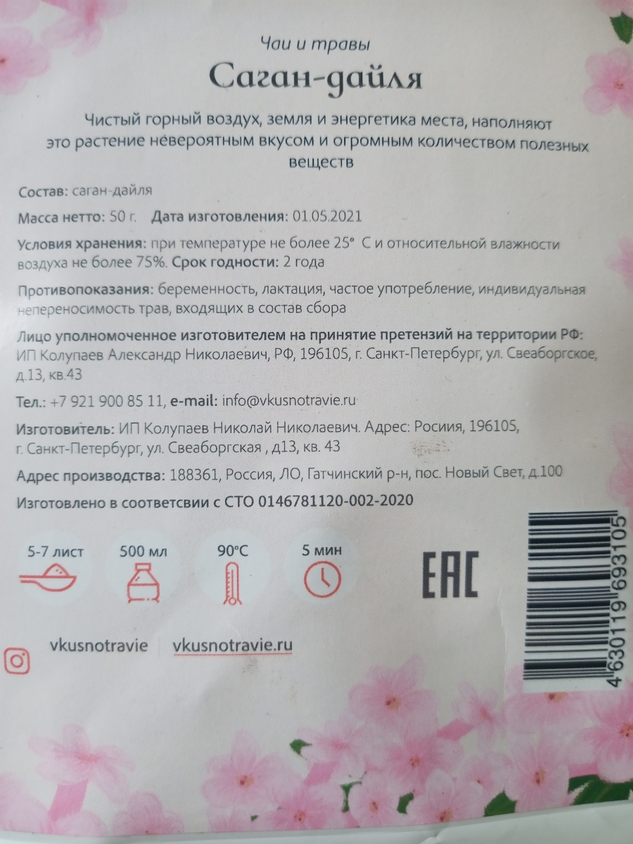 Вкуснотравье Чай Саган-дайля (природный энергетик) 25 гр