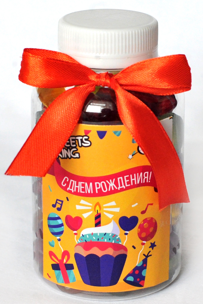 Вкусный подарок жевательный мармелад в банке сюрприз "С днем рождения" 200г