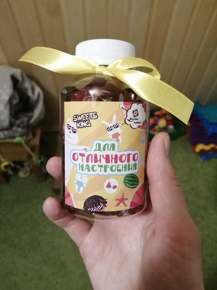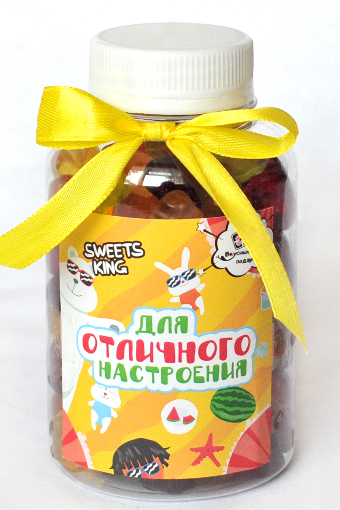 Вкусный подарок жевательный мармелад в банке сюрприз "Для отличного настроения" 200г