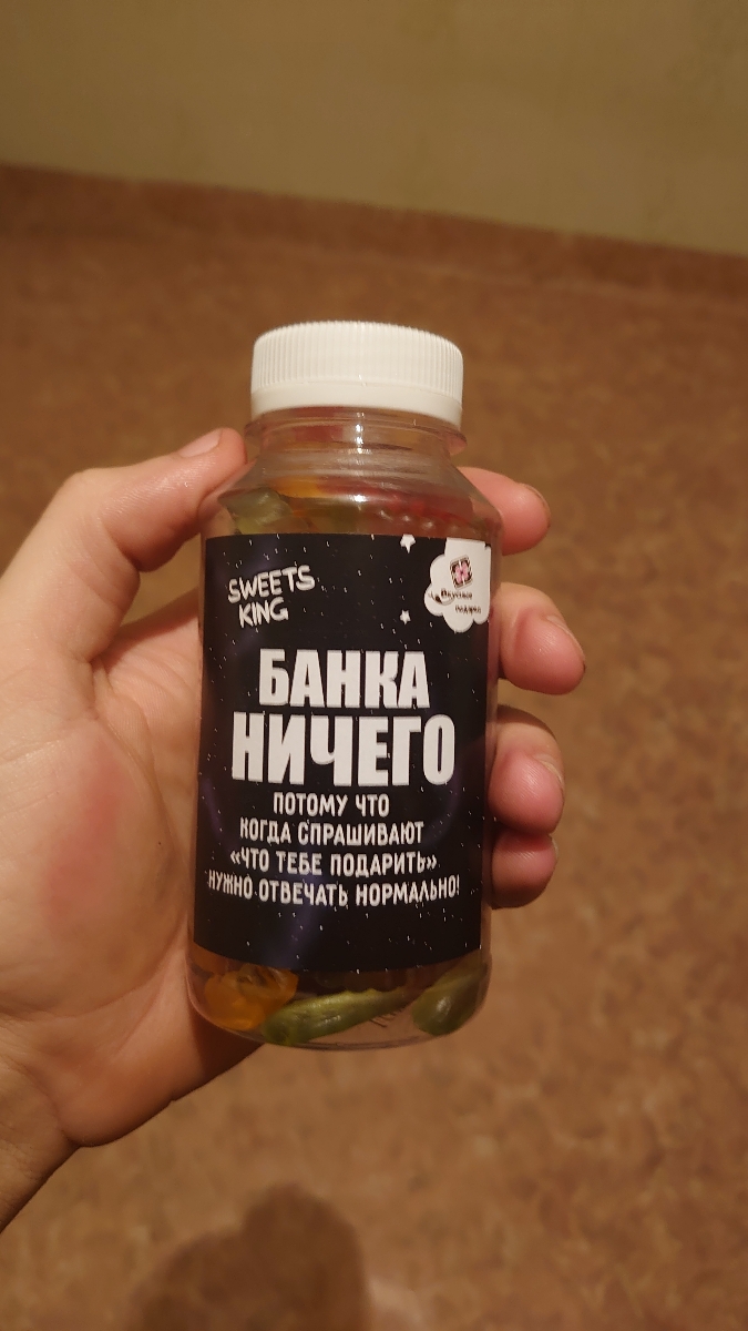 Вкусный подарок жевательный мармелад с витаминами сюрприз "Банка ничего" 200г