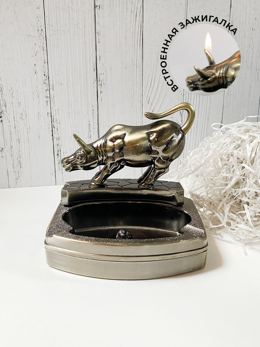 Пепельница с зажигалкой "Бык" в подарочной упаковке