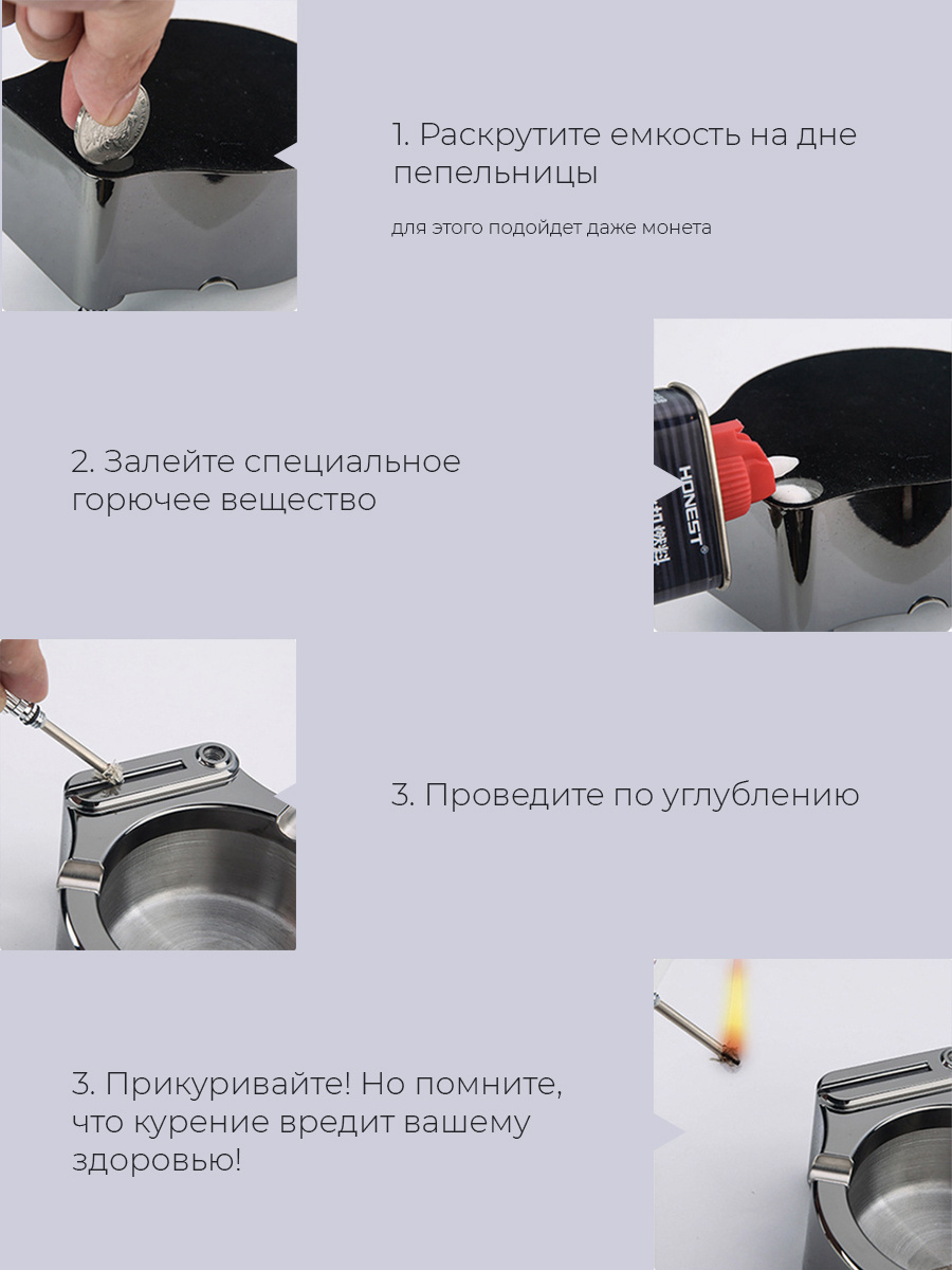 Пепельница со встроенной зажигалкой/11 см/Подарочная коробка