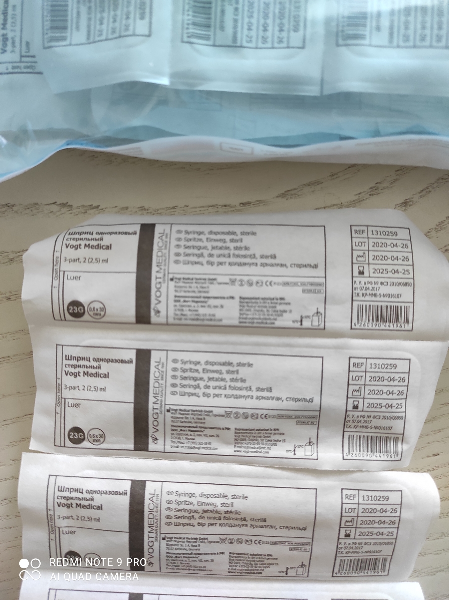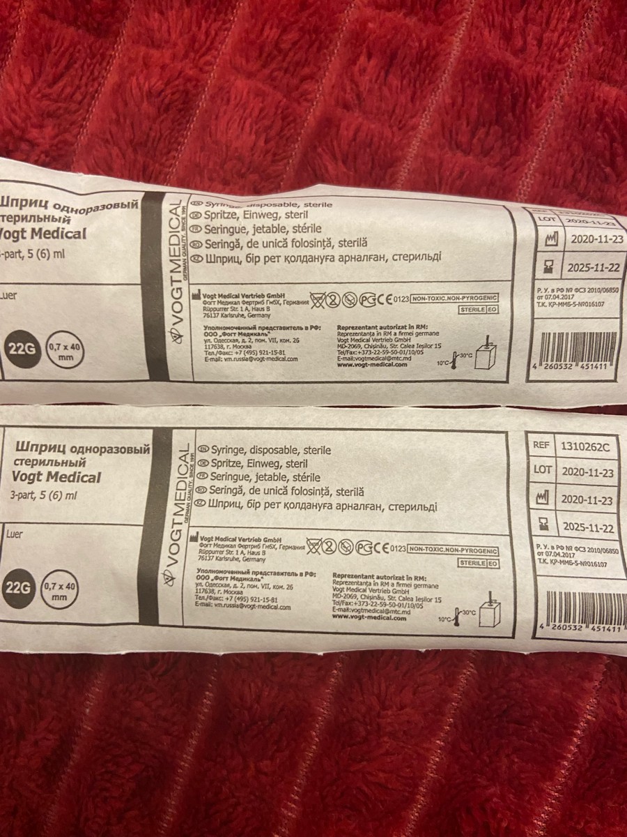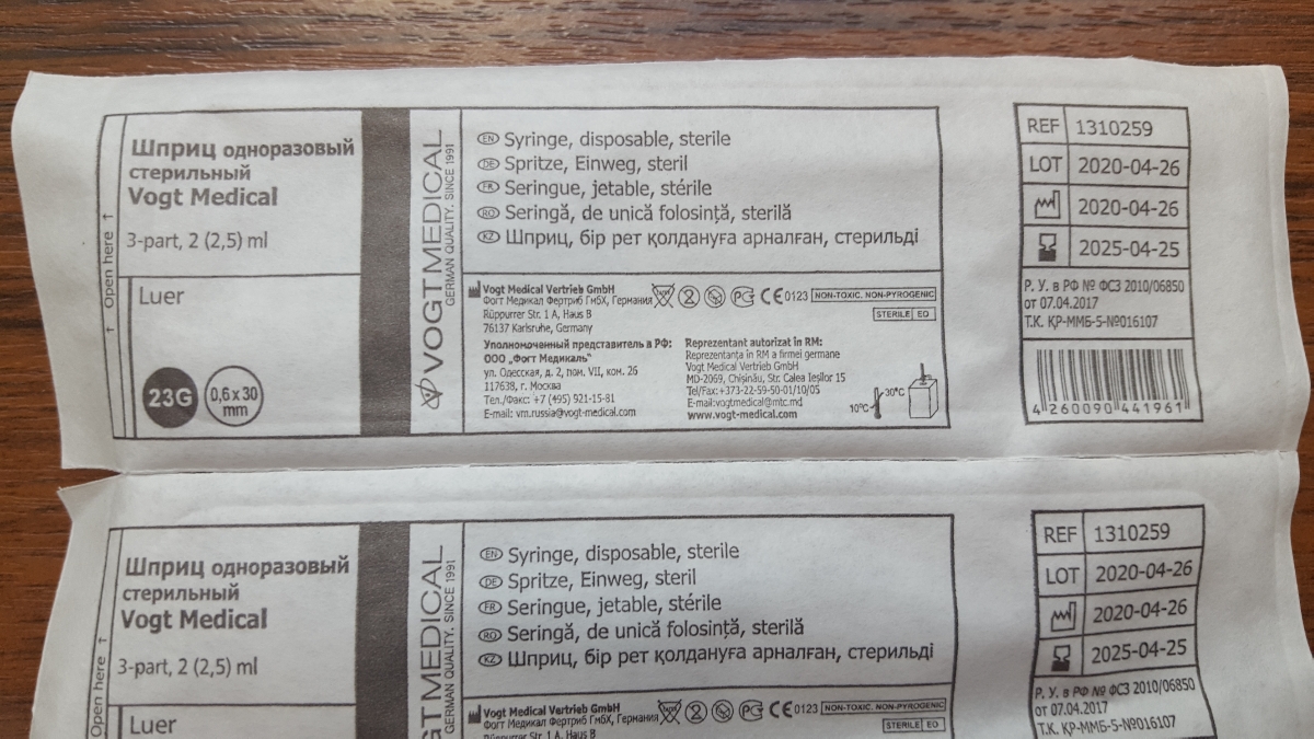 Иглы инъекционные 23G 1 1/4" (0,6x30мм), 80 шт. Vogt Medical, Германия