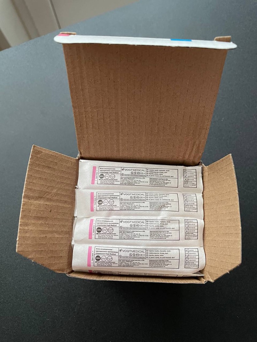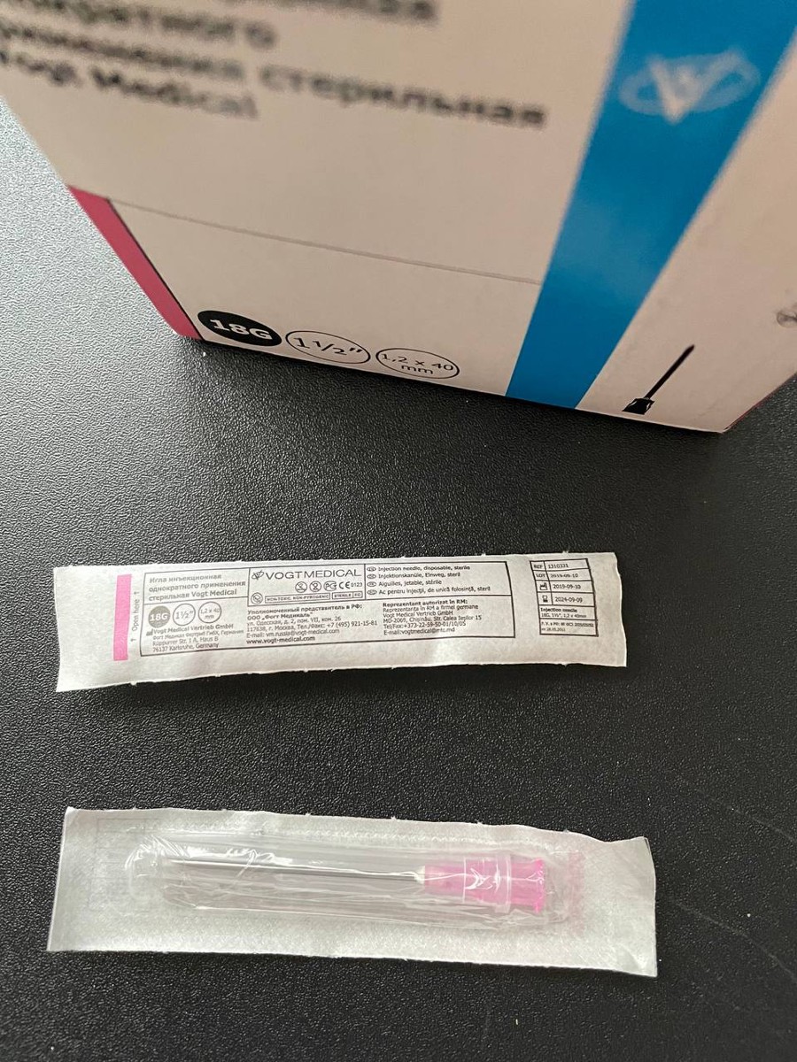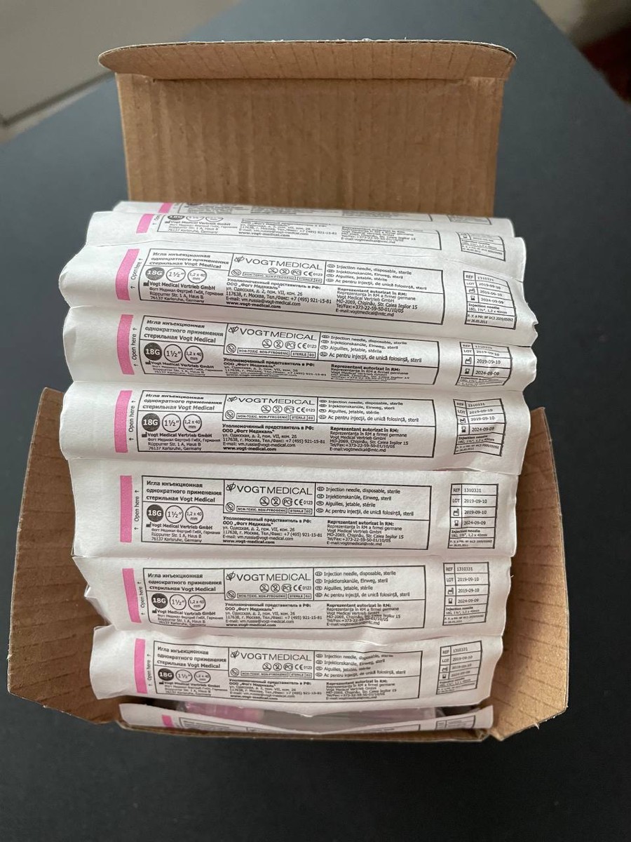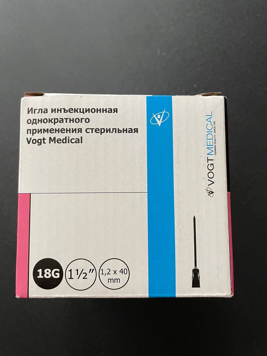 Иглы инъекционные 18G 1 1/2" (1,2x40мм), 80 шт. Vogt Medical, Германия