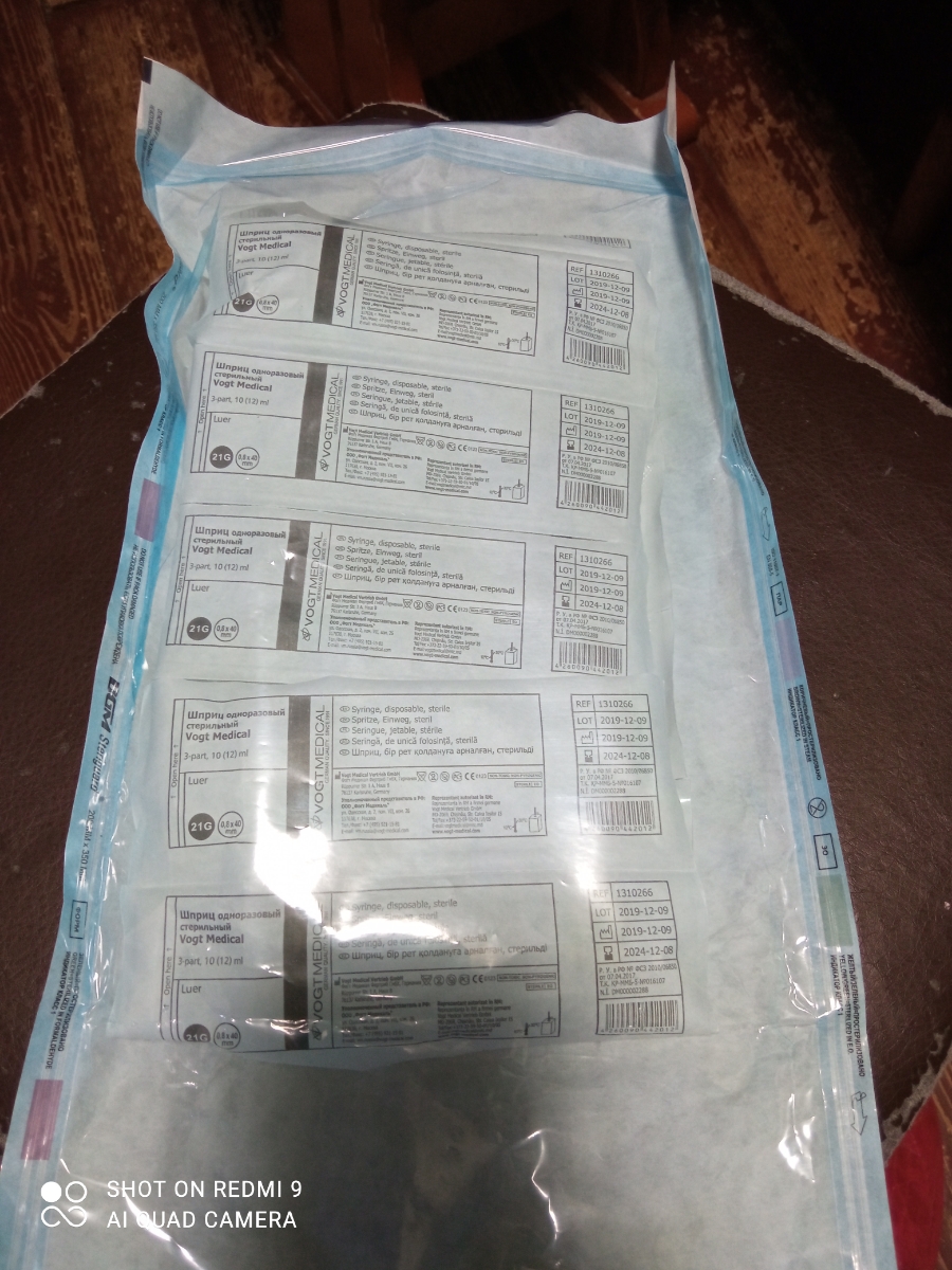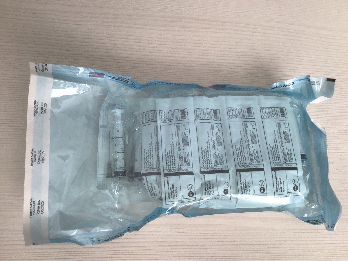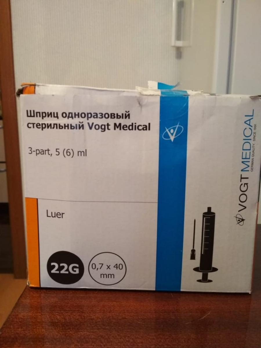 Шприц 5 мл медицинский с иглой 22G, Германия