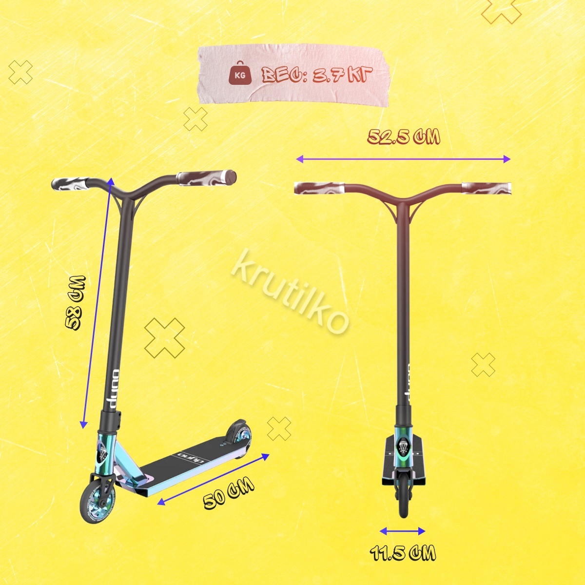 Самокат Трюковой Vokul Трюковой DYNO 2021 Бензиновый, 110 мм