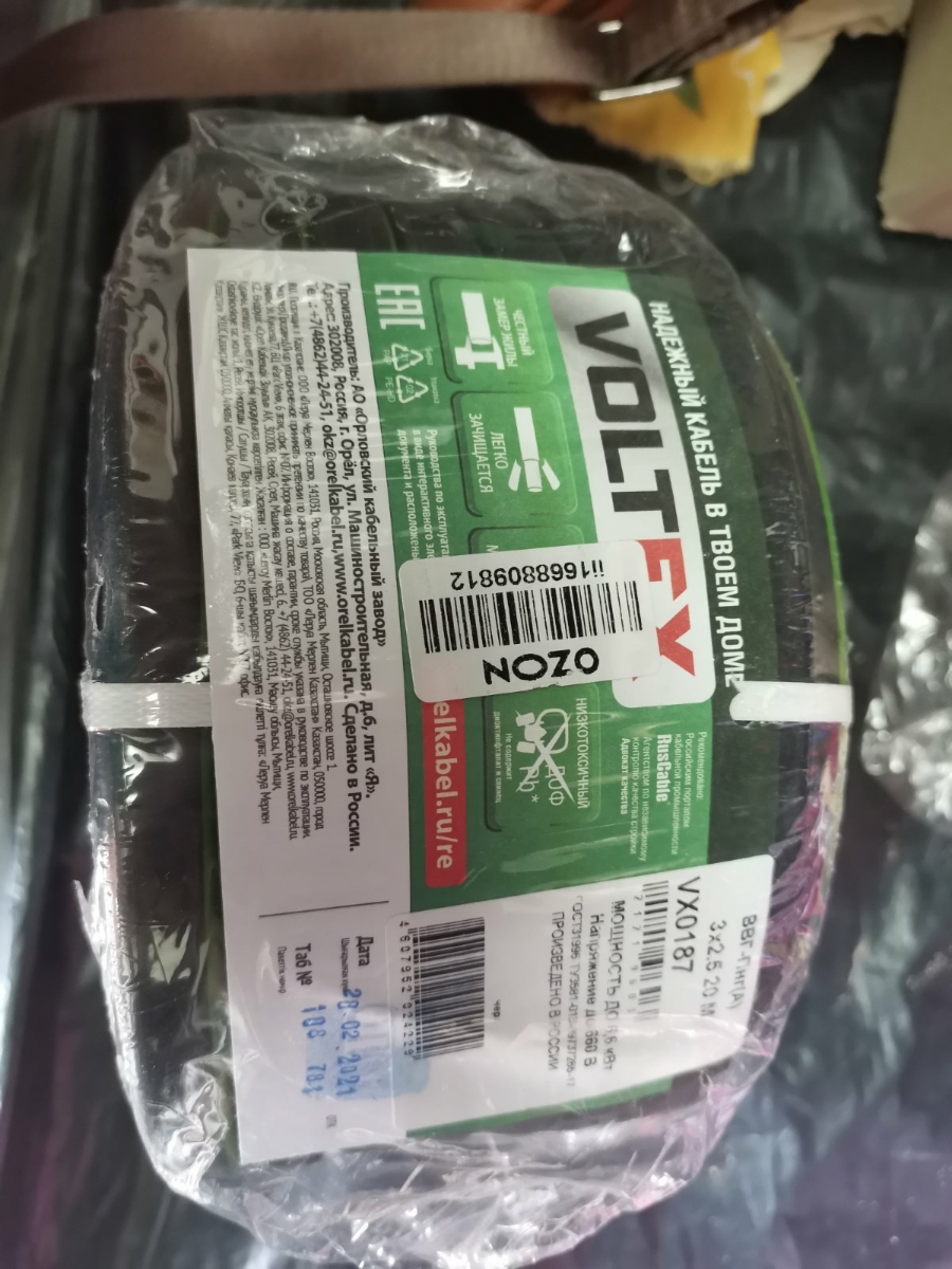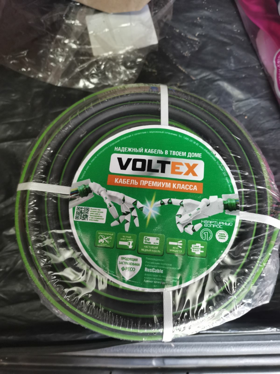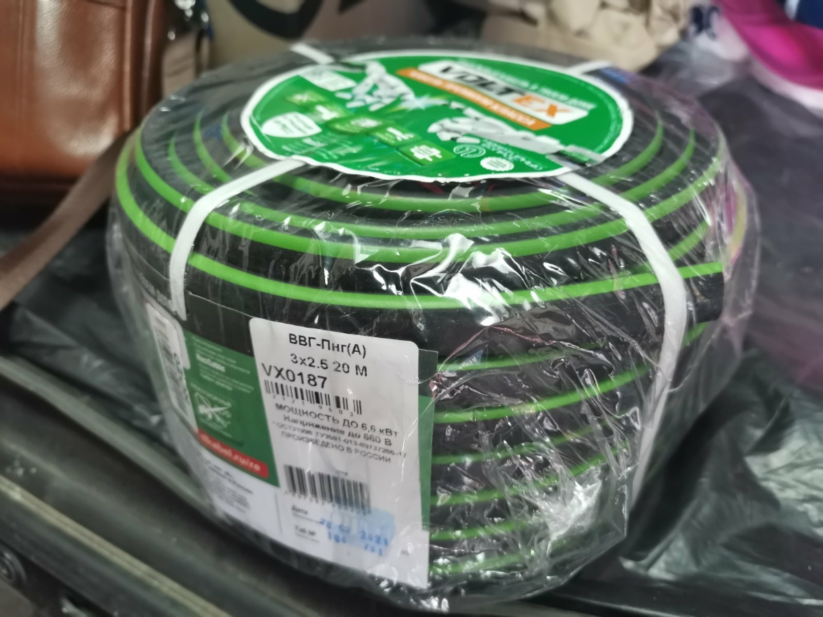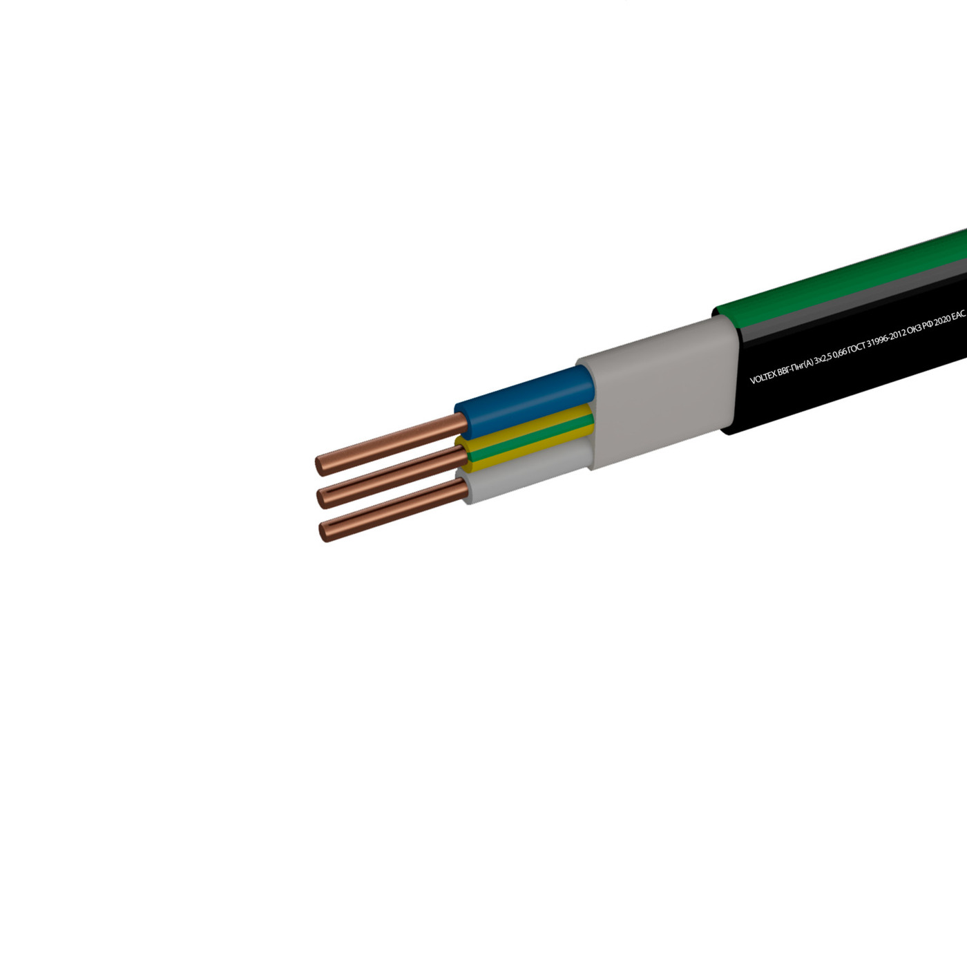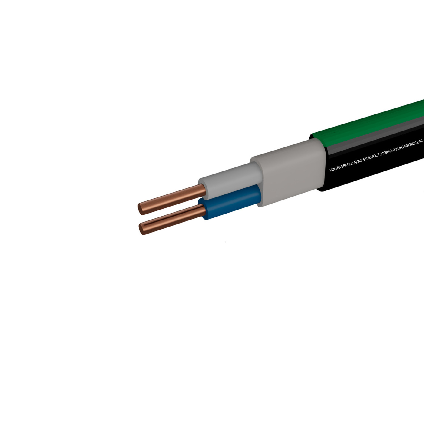 Электрический кабель Voltex ВВГ-Пнг(А) 2 x 2,5 мм², 20 м, Черный с зелёной полосой