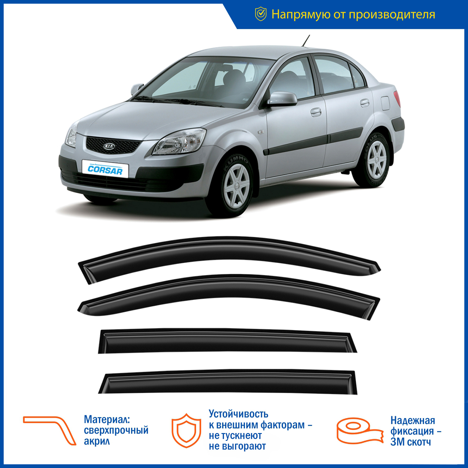 Дефлекторы окон /ветровики/ Voron Glass серия CORSAR для Kia Rio II 2005-2011 /седан/накладные/скотч/к-т 4шт./