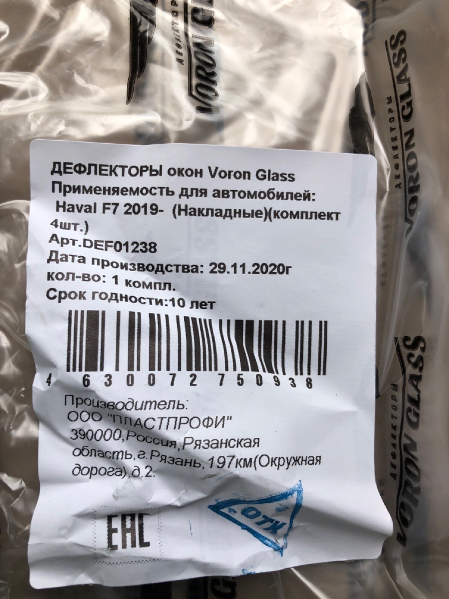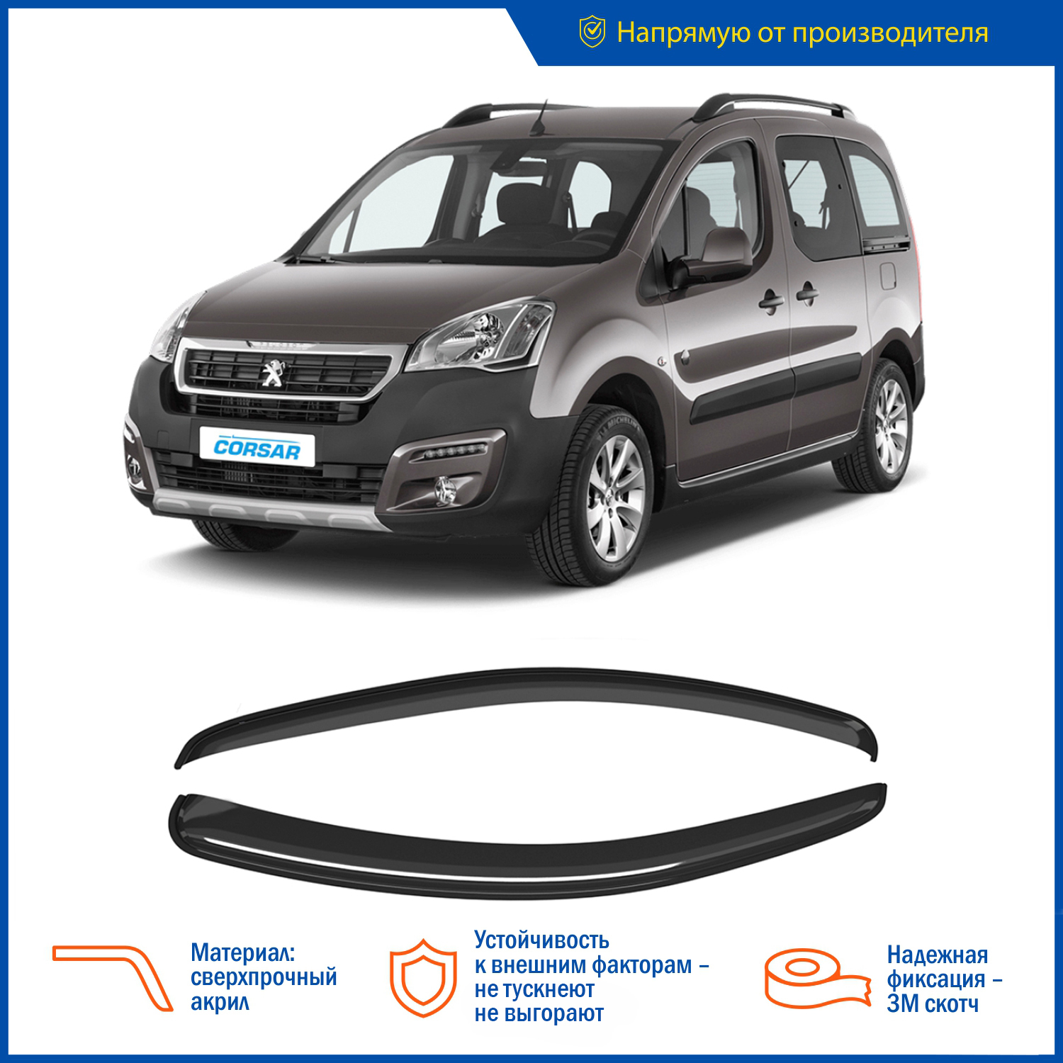 Дефлекторы окон /ветровики/ Voron Glass серия Corsar для Peugeot Partner II 2008-2018 /фургон /накладные /к-т 2шт/