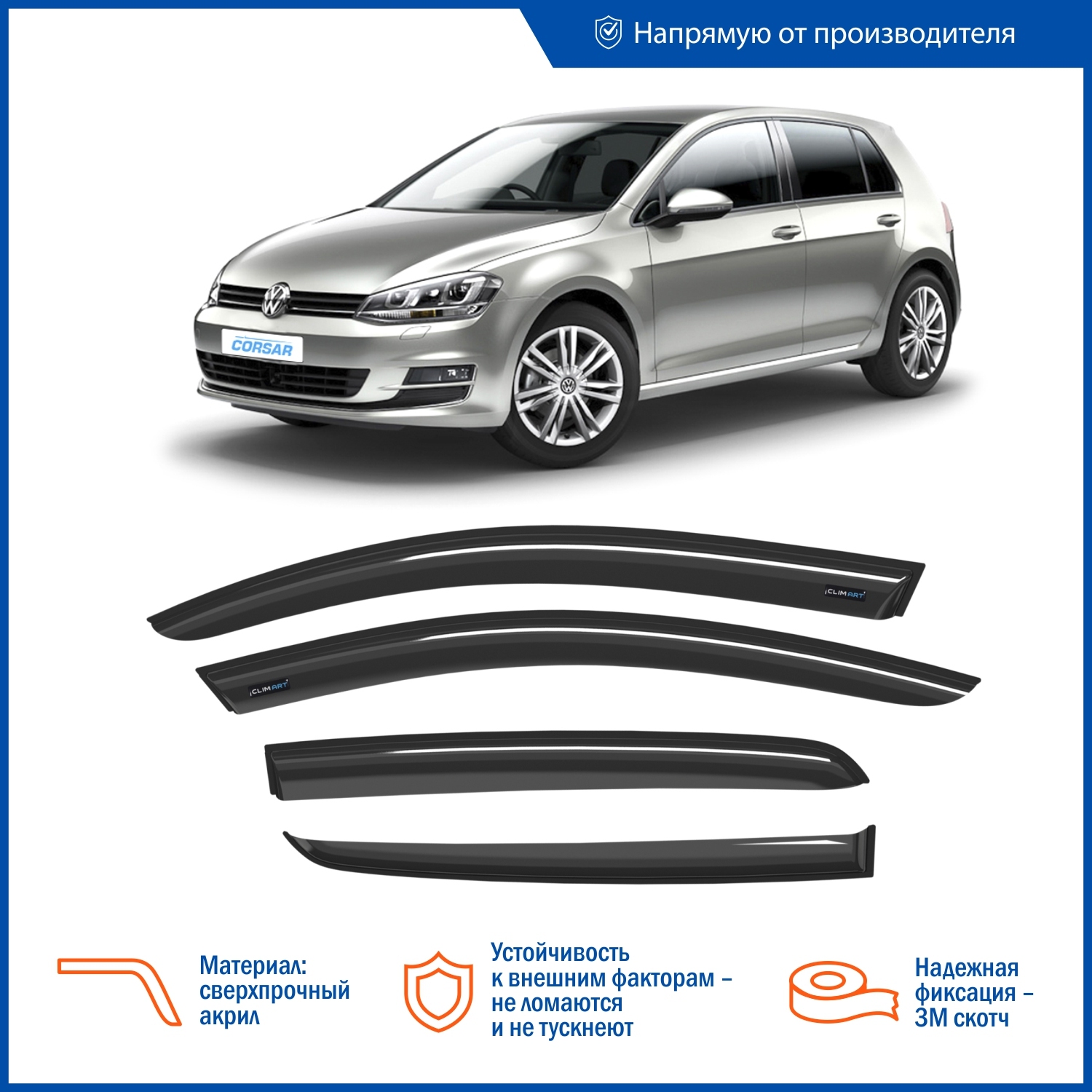 Дефлекторы окон /ветровики/ Voron Glass серия Corsar для Volkswagen Golf VII 2012-2020 /хетчбек /накладные /к-т 4шт/