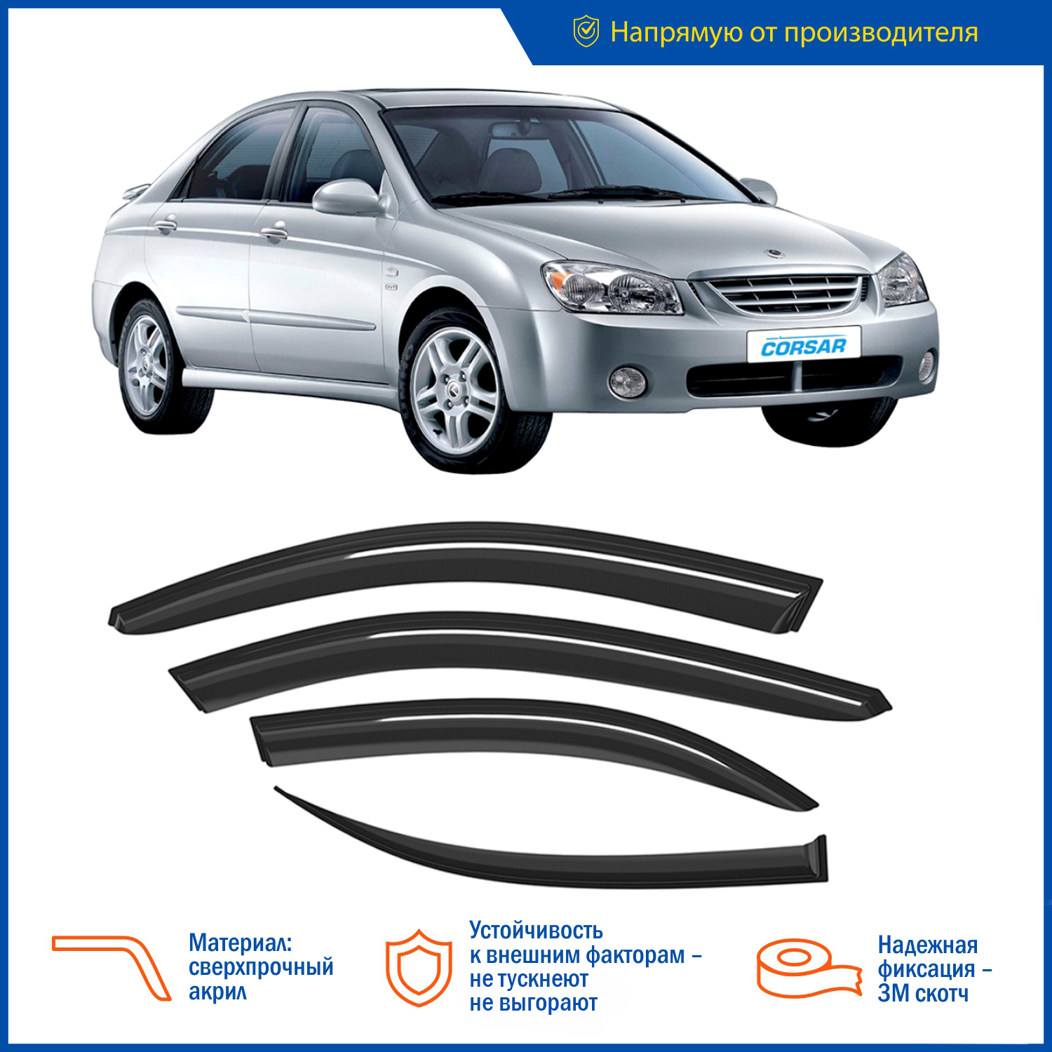 Дефлекторы окон /ветровики/ Voron Glass серия Corsar для Kia Cerato I 2004-2009 /седан /накладные /к-т 4шт/