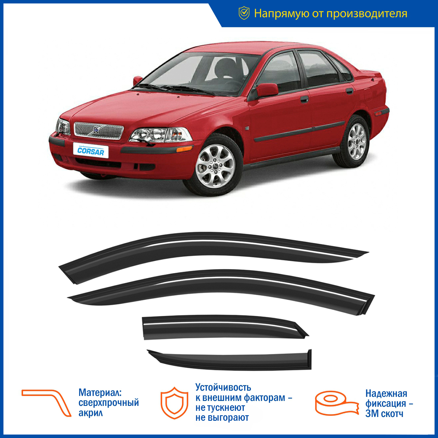 Дефлекторы окон /ветровики/ Voron Glass серия Corsar для Volvo S40 I 1996-2004 /седан /накладные /к-т 4шт/